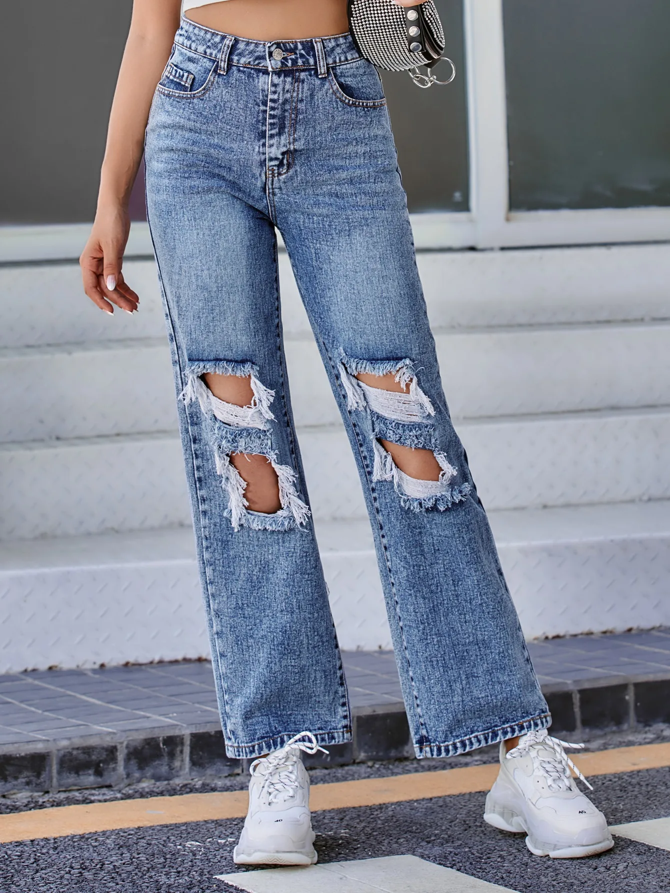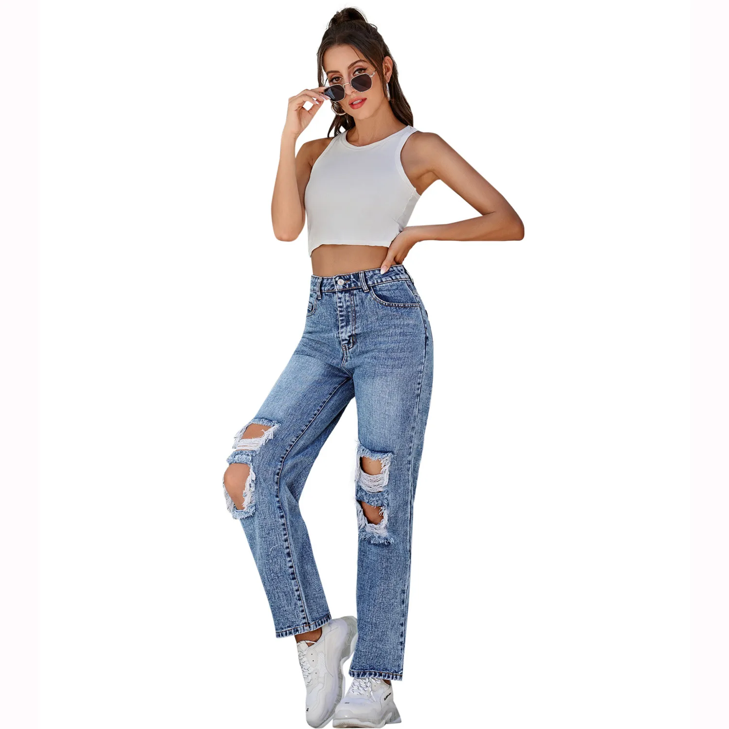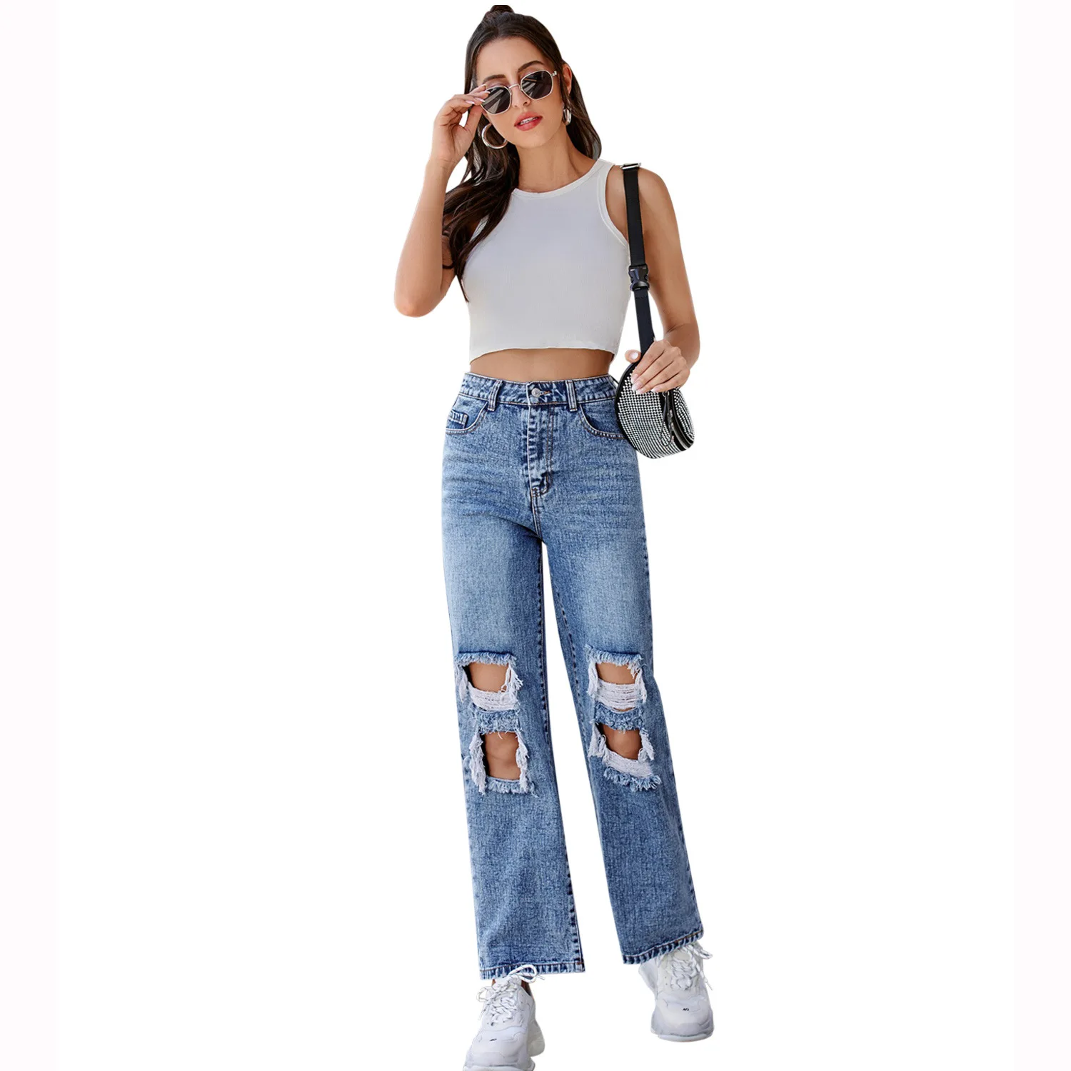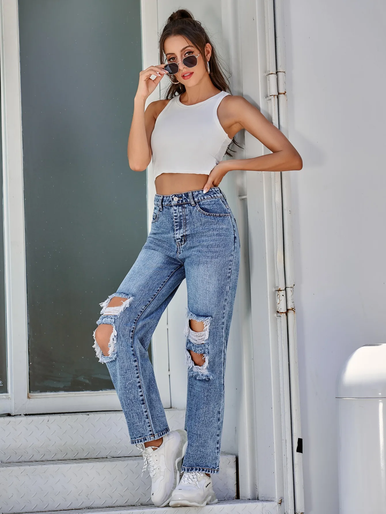 Julia Fashion - Holiday New Fashion Holes High Waist Jeans