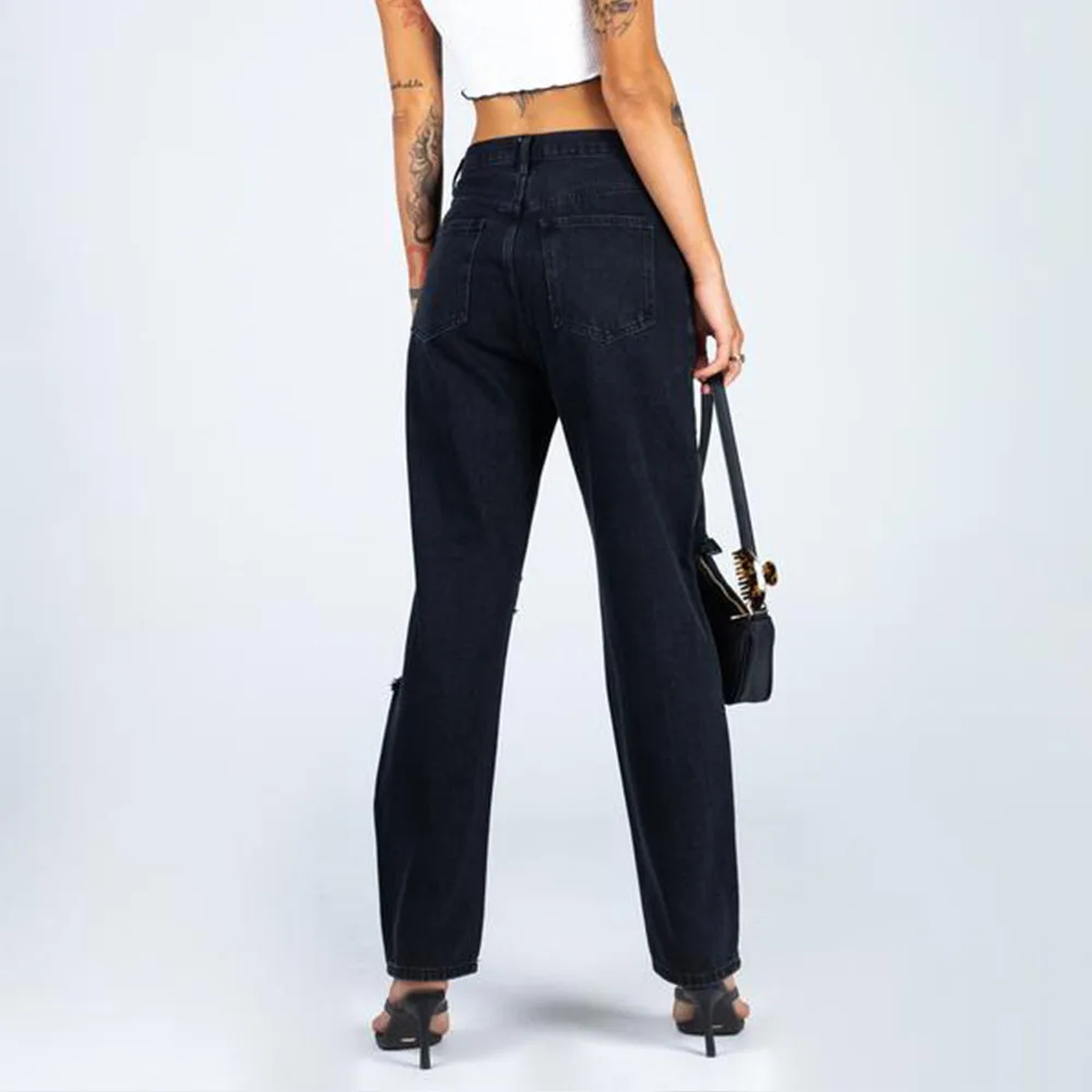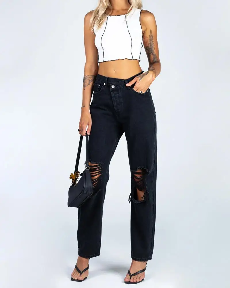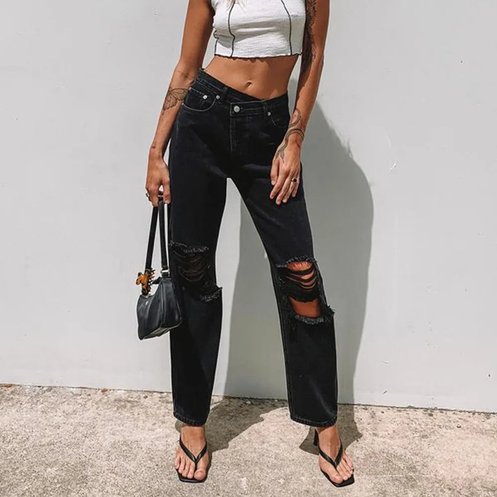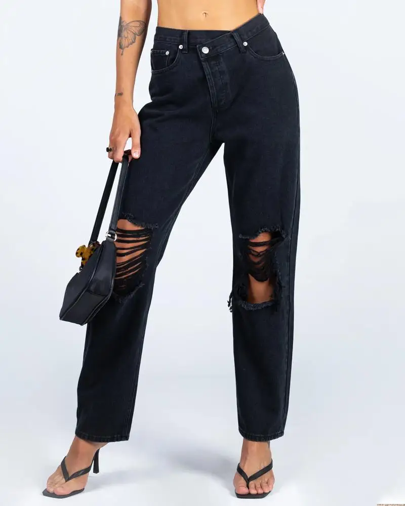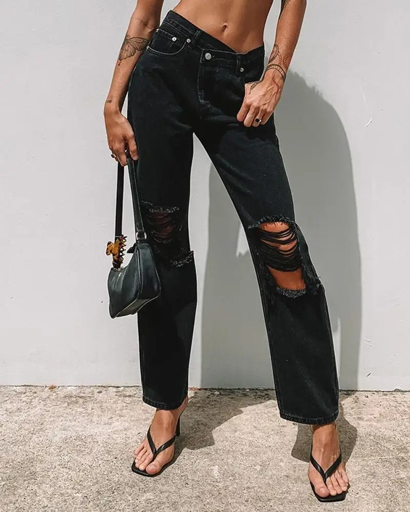 Julia Fashion - Streetwear High Waist Asymmetric Ripped Jeans