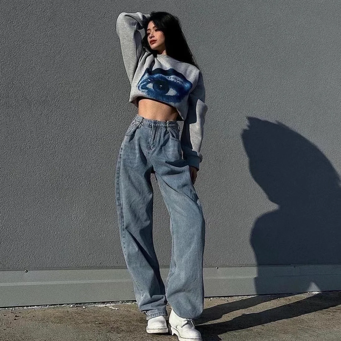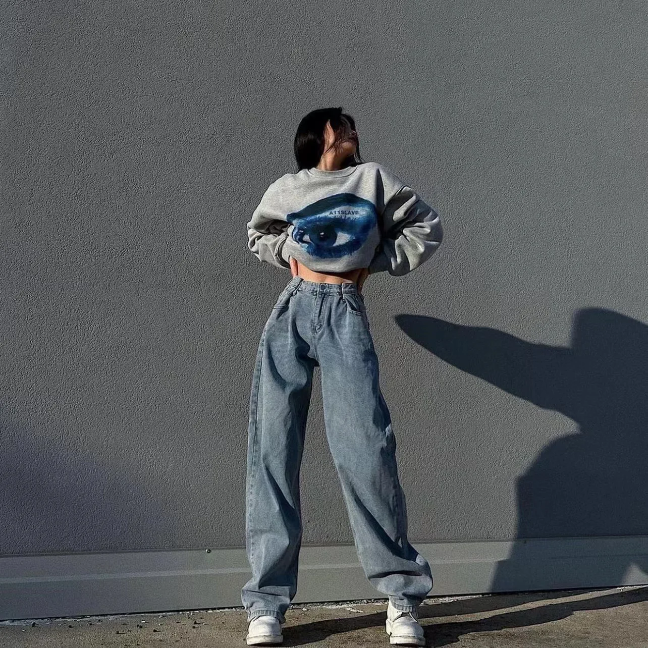 Julia Fashion - Women Baggy Jeans Streetwear Straight Pants