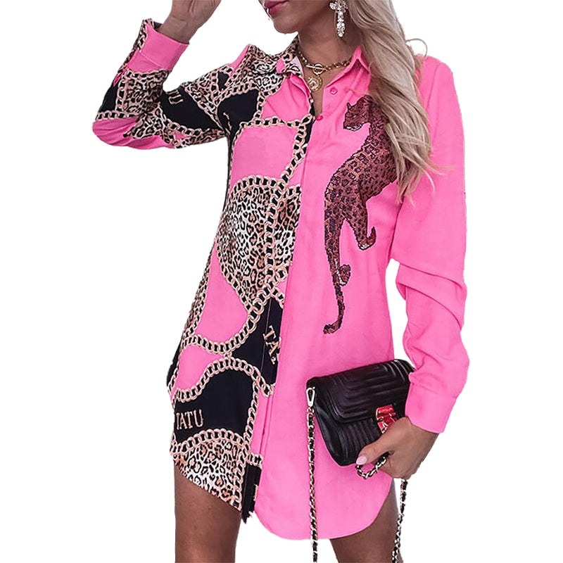 Julia Fashion - Women Fashion Chain Print Shirt Lady Long Sleeve Blouses