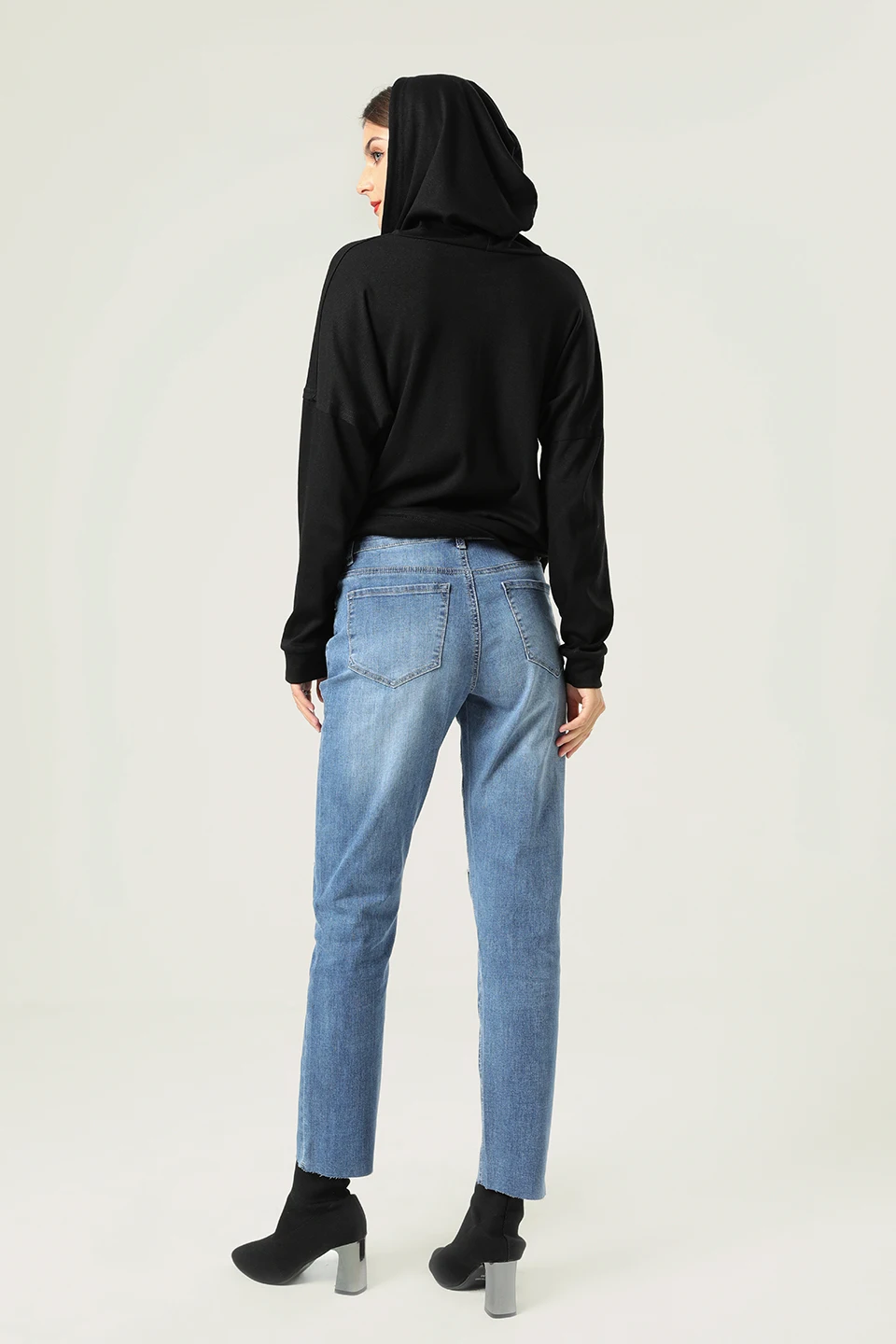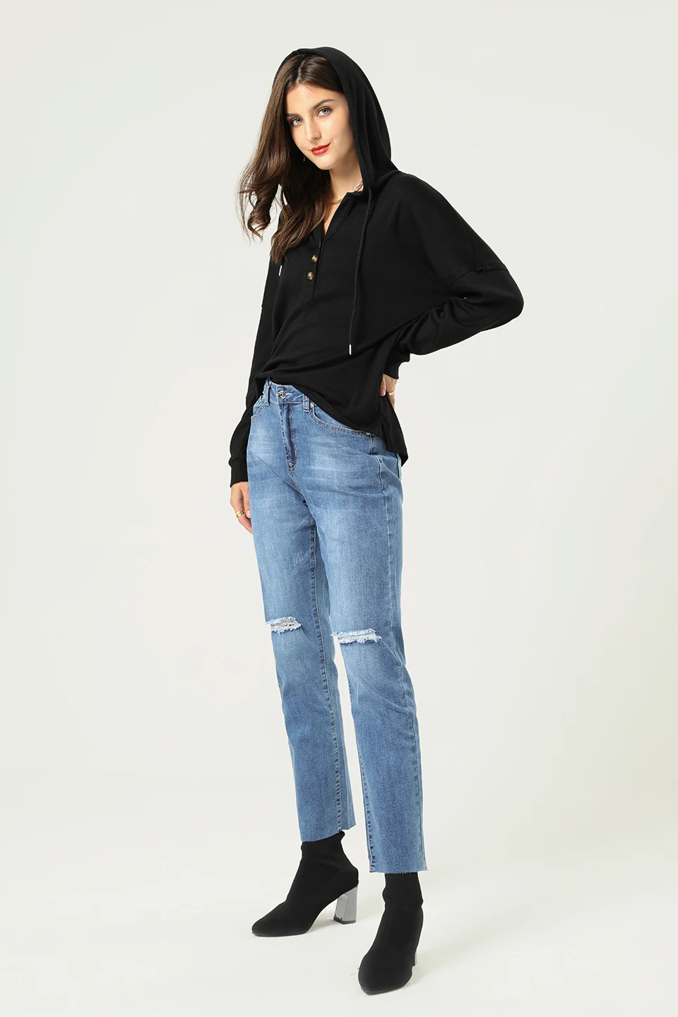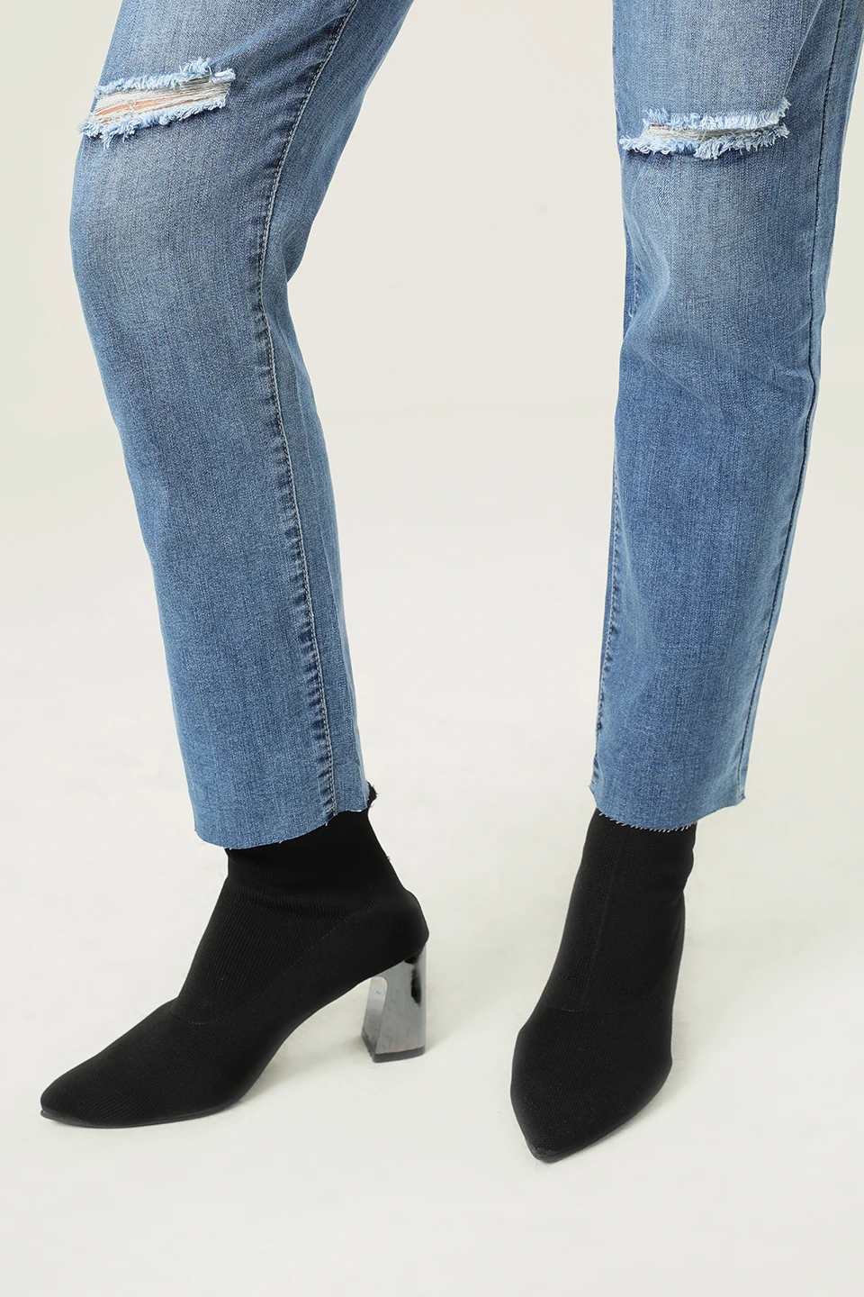 Julia Fashion - Women's Jeans Mid Waist Ripped Denim Pants