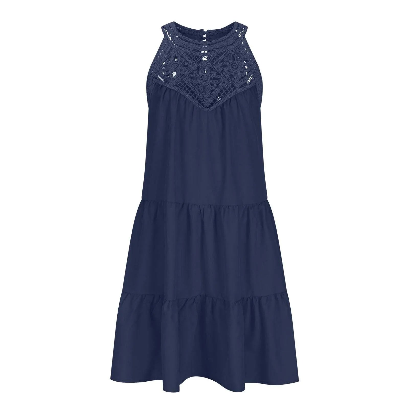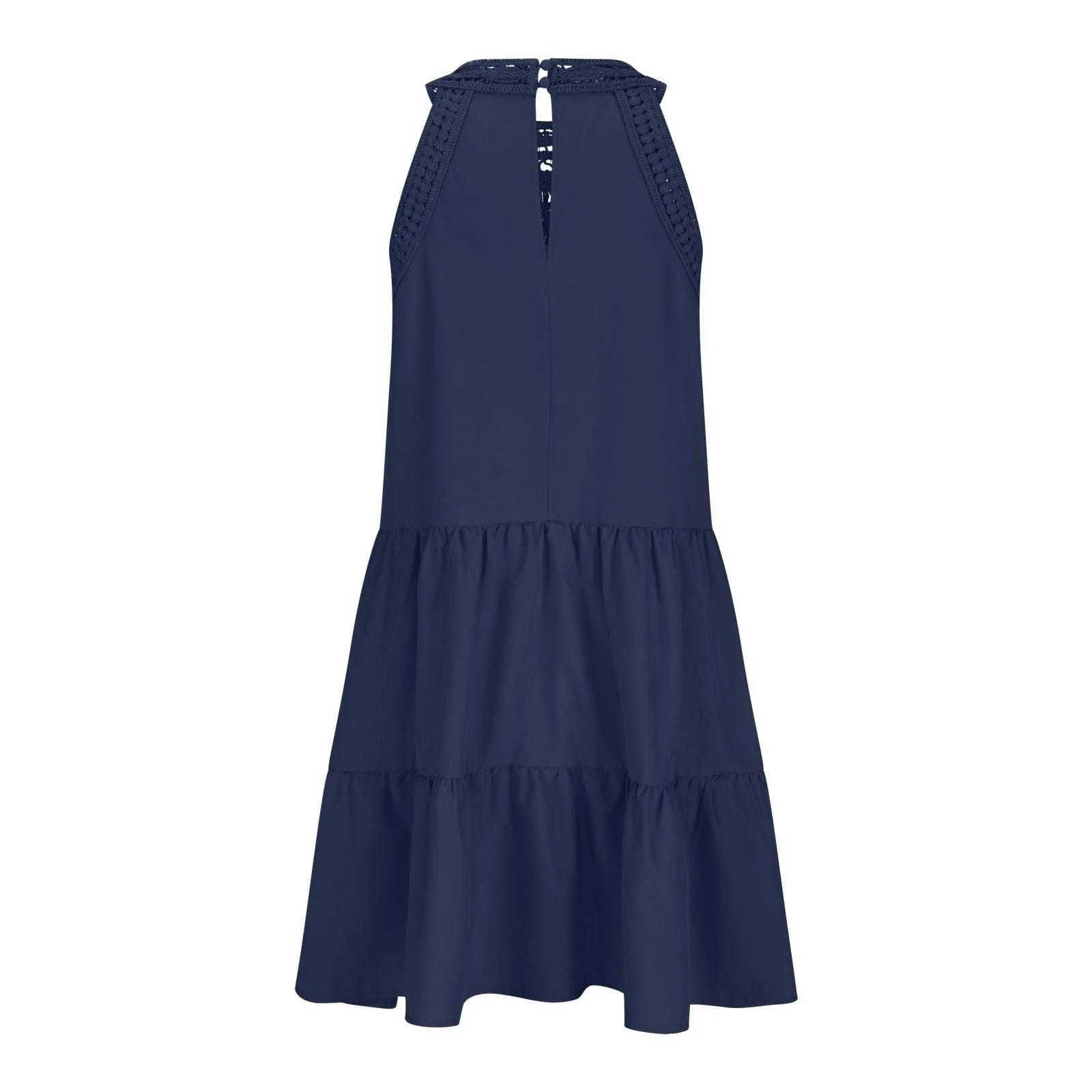 JuliaFashion - 2024 New Summer Women Vest Sleeveless Solid Color Beach Midi A Line Large Swing Casual Loose SunVestidos Dress