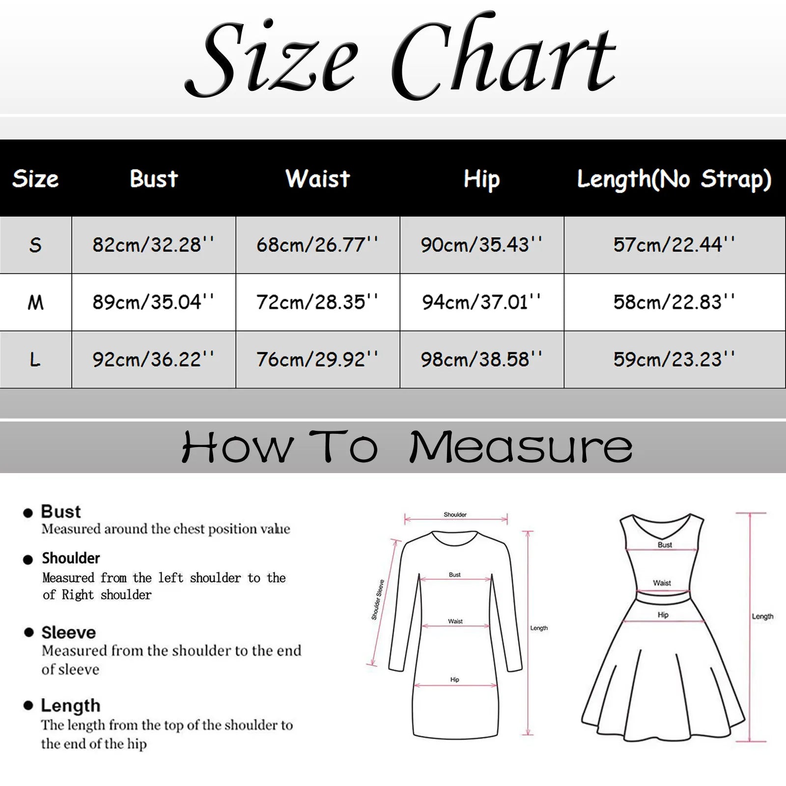 | Size | Bust | Waist | Hip | Length(No Strap) |
