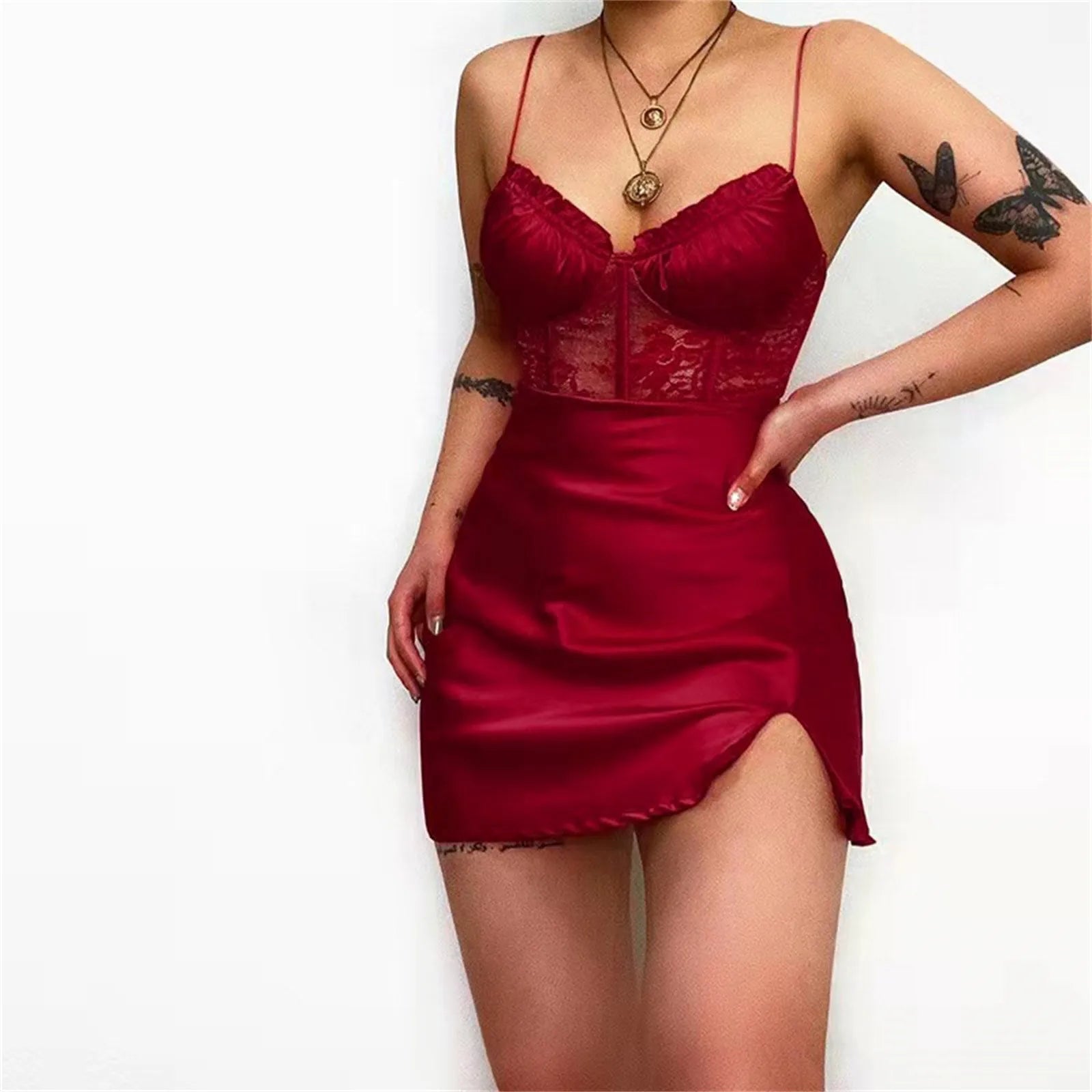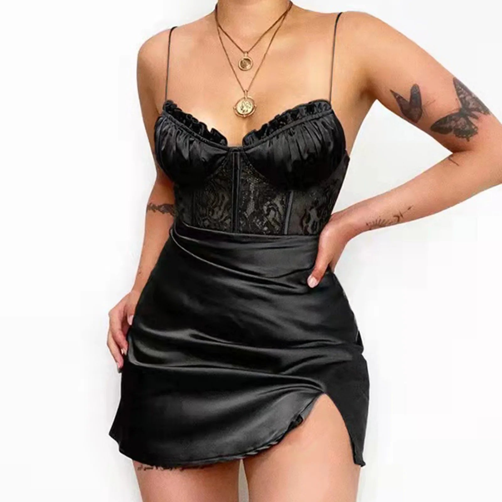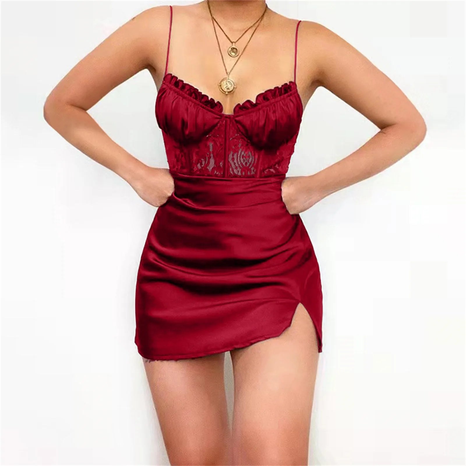 JuliaFashion - 2024 Sexy Straps Bodycon White Mini Women Fashion High Waist Lace Hollow Design Slim Summer Split Club Party Dress