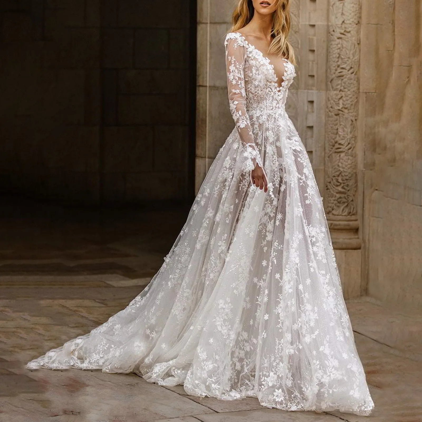 JuliaFashion - 2024 Summer Women Maxi Party Floor Length Embroidery White Lace Backless Tulle Gown Dress