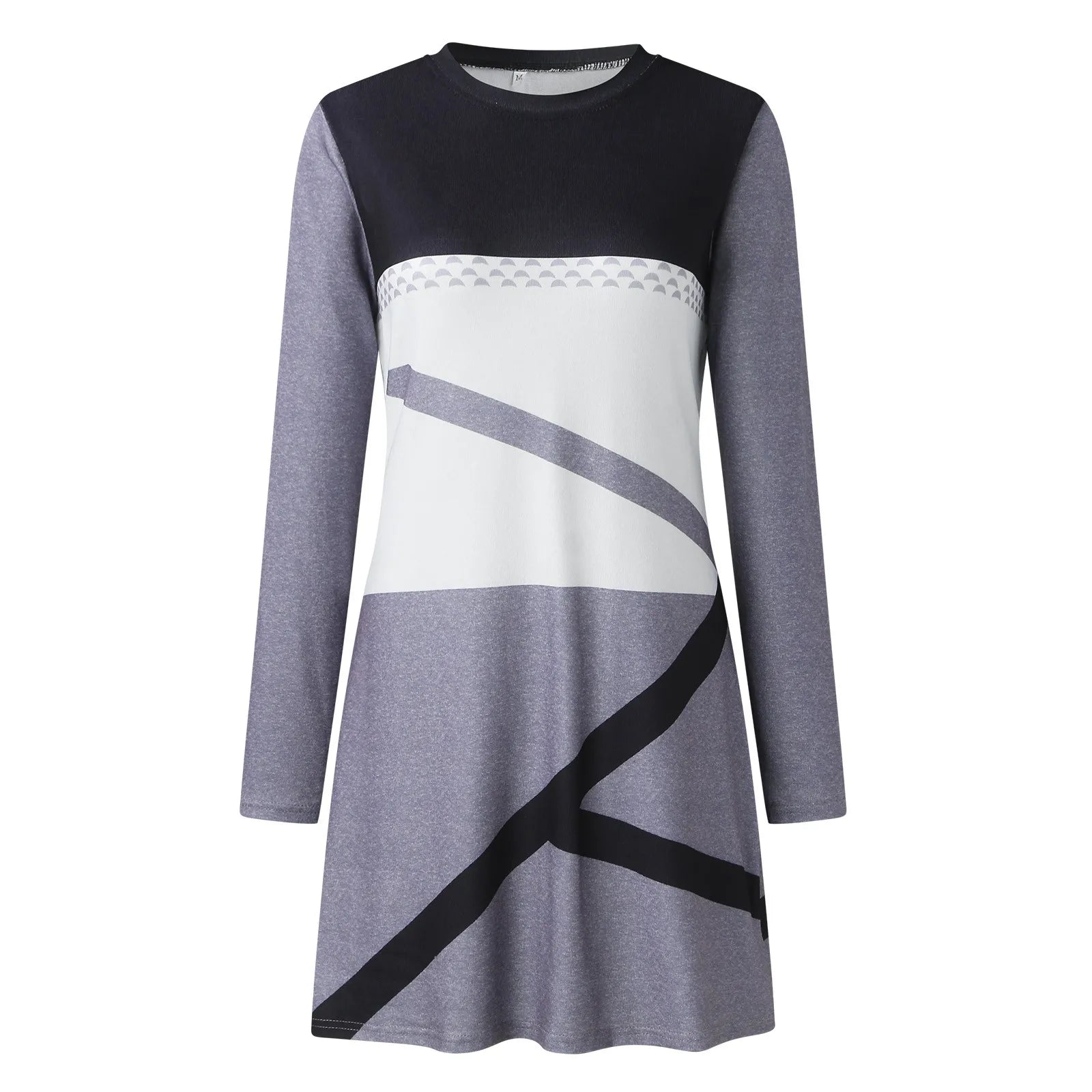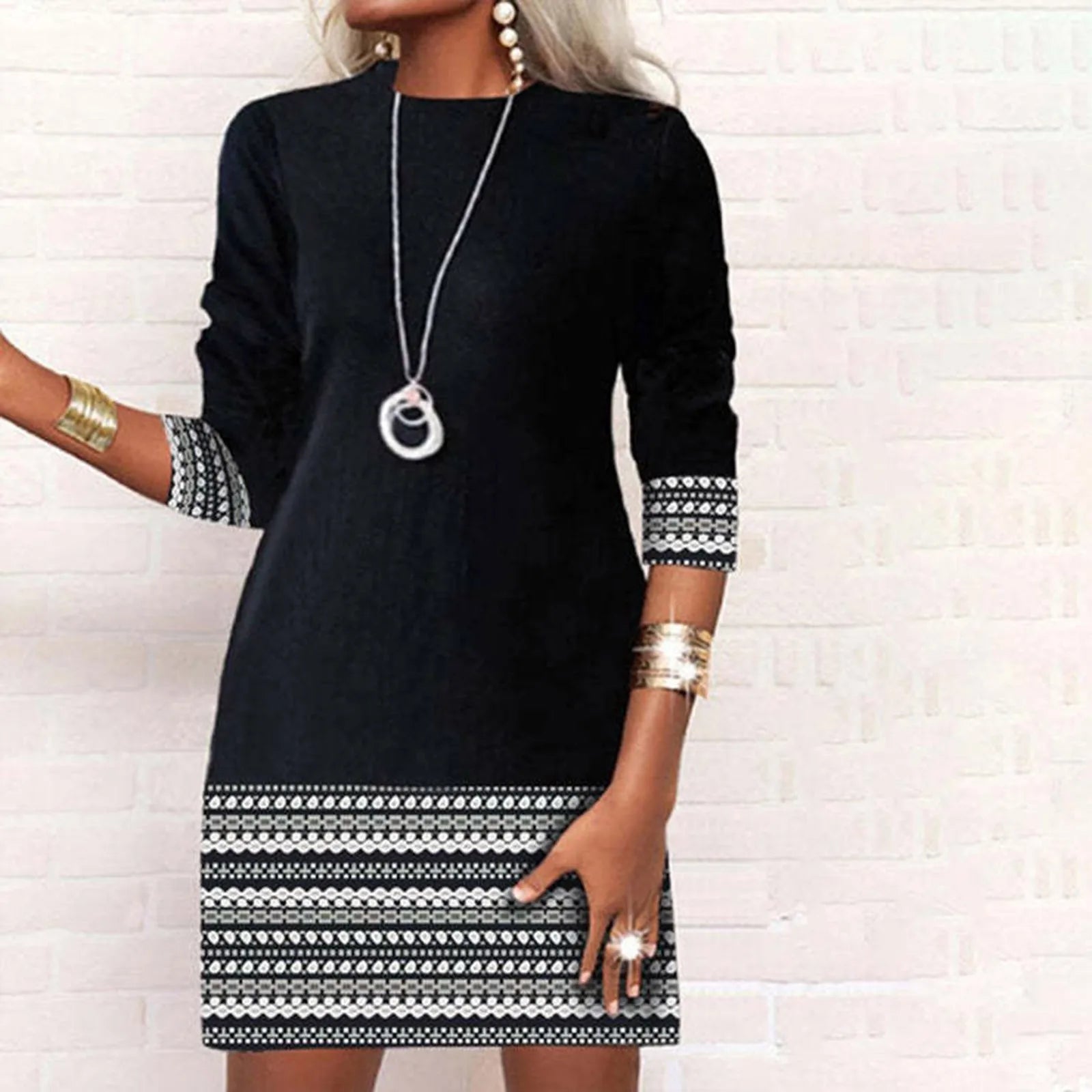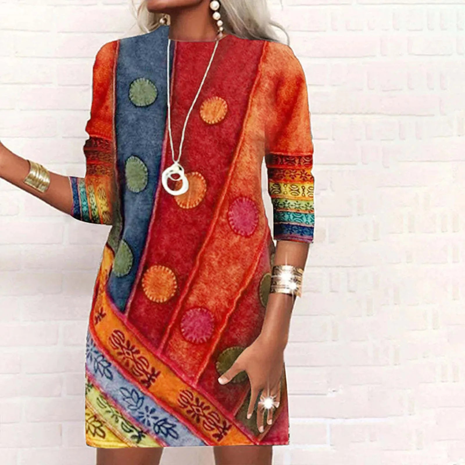 JuliaFashion - 2024 Vintage Round Neck Geometric Printing Long Sleeve A-Line Autumn Winter New Fashion Patchwork Slim Mini Women Dress