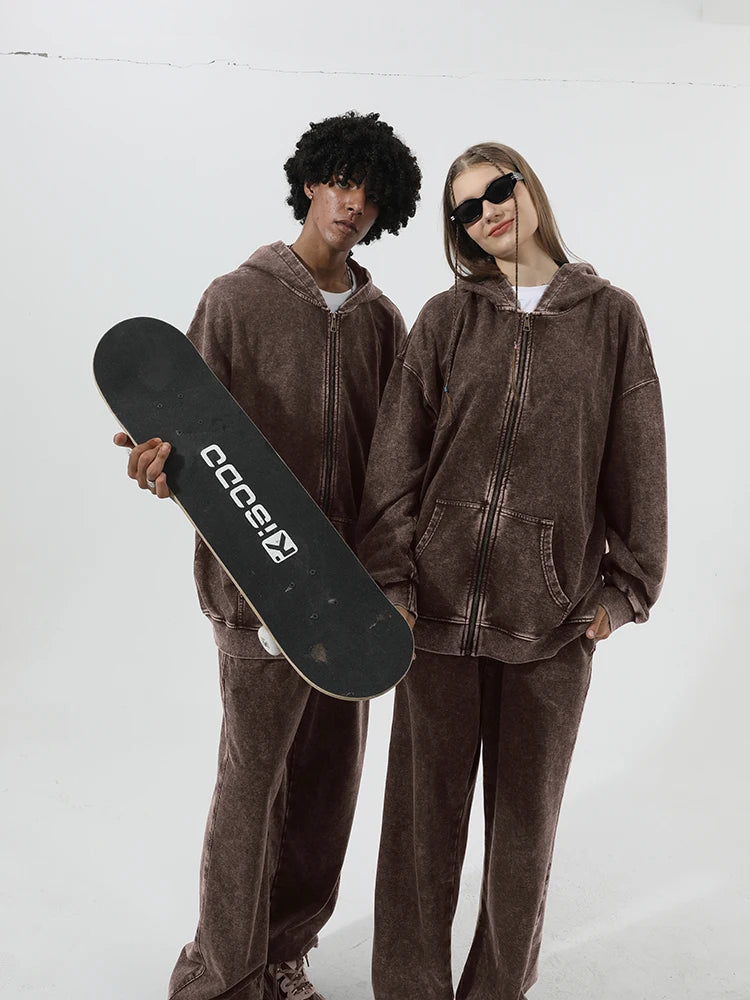 American Retro Washed Cardigan Sweater Autumn Winter Heavy Fashion Ins Hoody
