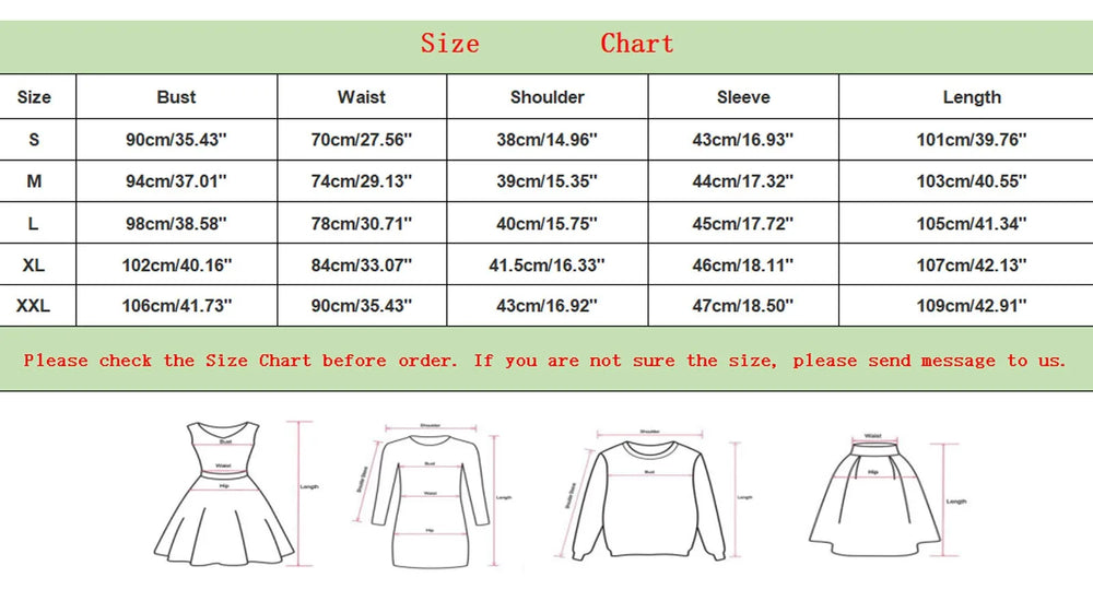 | Size | Bust | Waist | Shoulder | Sleeve | Length |