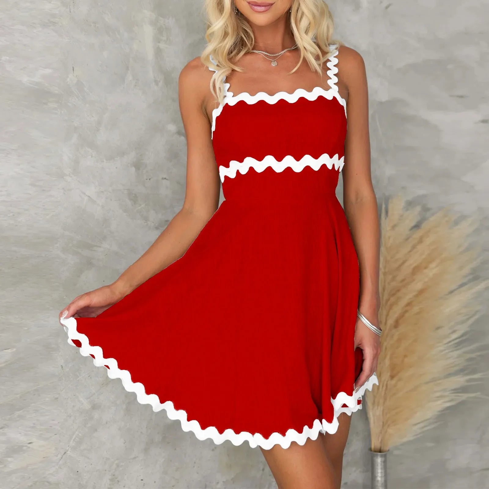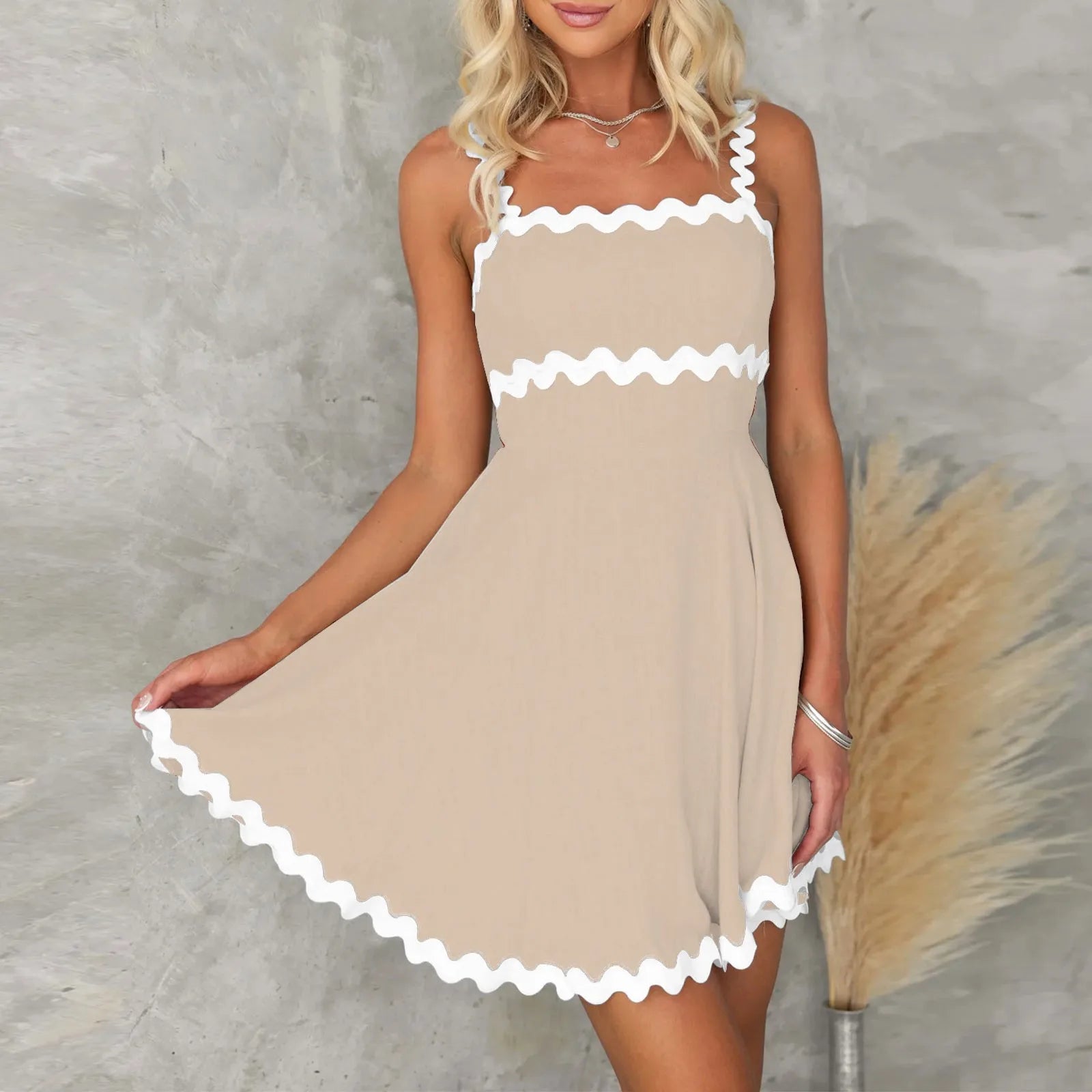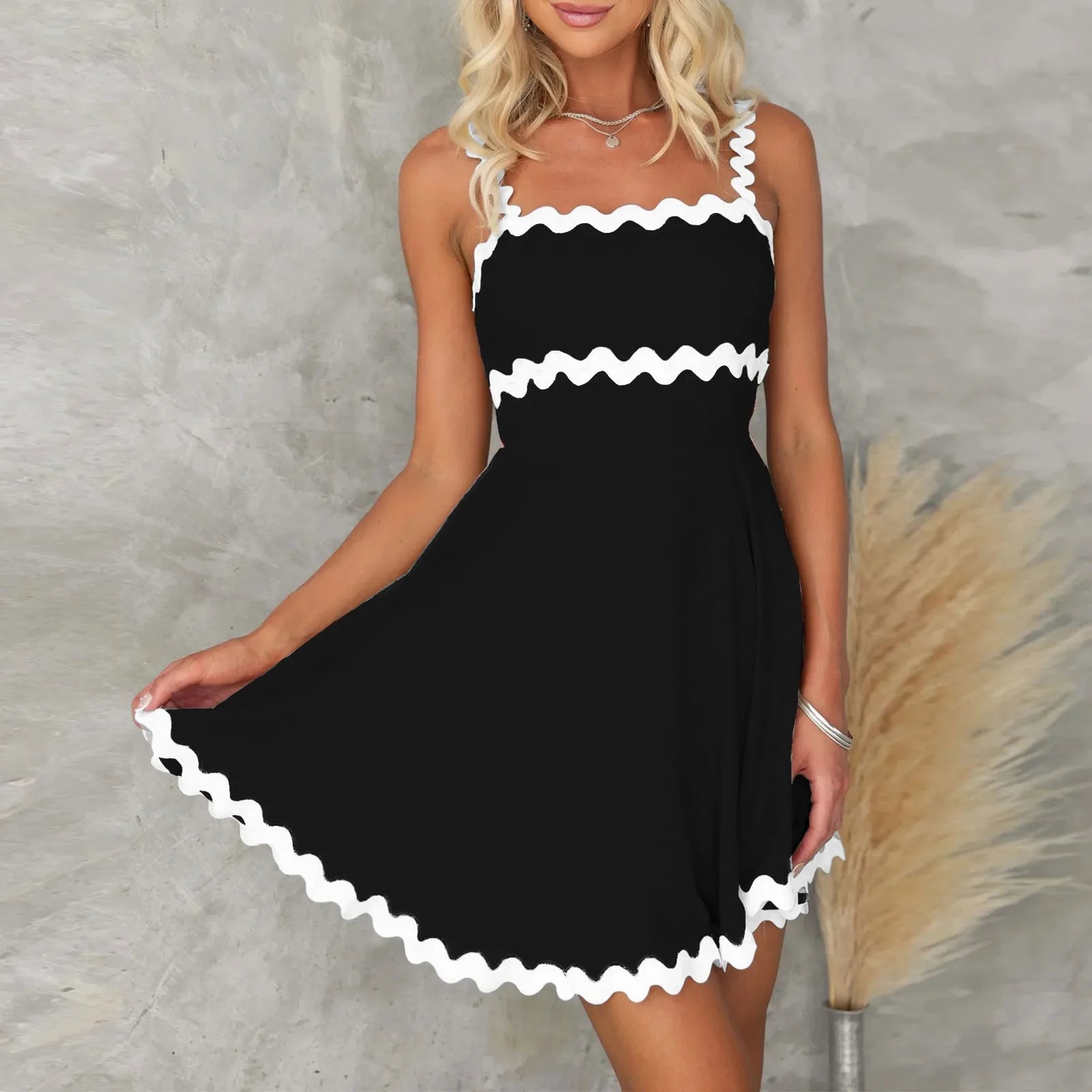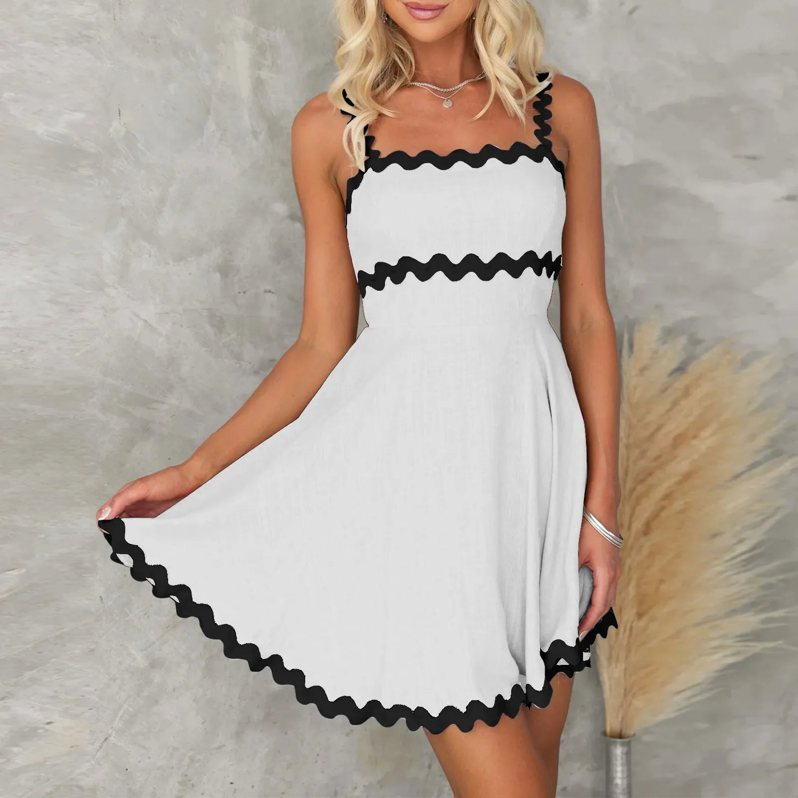 JuliaFashion - Backless Striped Summer 2024 Elegant Women Sleeveless Spaghetti Strap Mini Female Loose Sexy Party Vestidos Dress