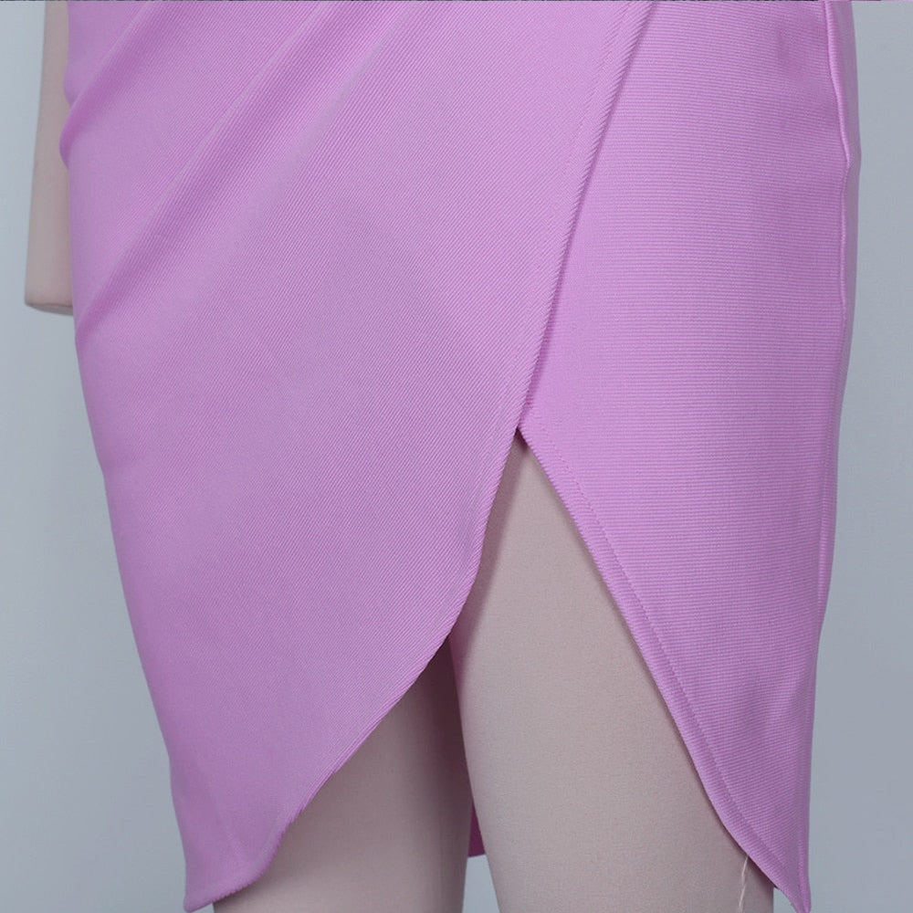 JuliaFashion - Purple Bodycon Draped Off Shoulder Party Dress