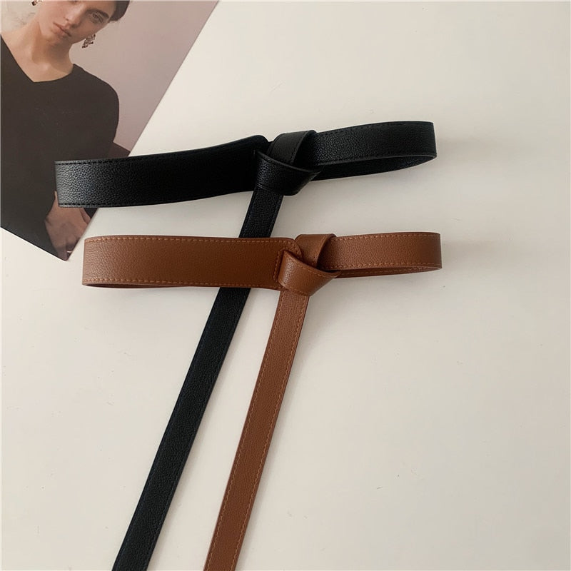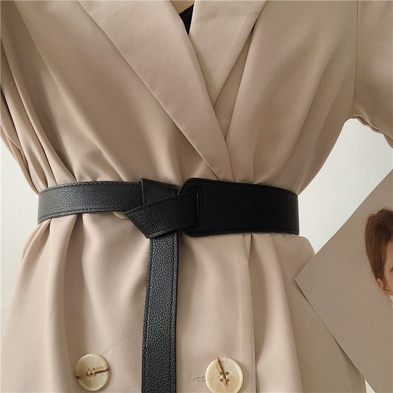 JuliaFashion-Knotted Decoration Skirt Simple Long Wide Belts