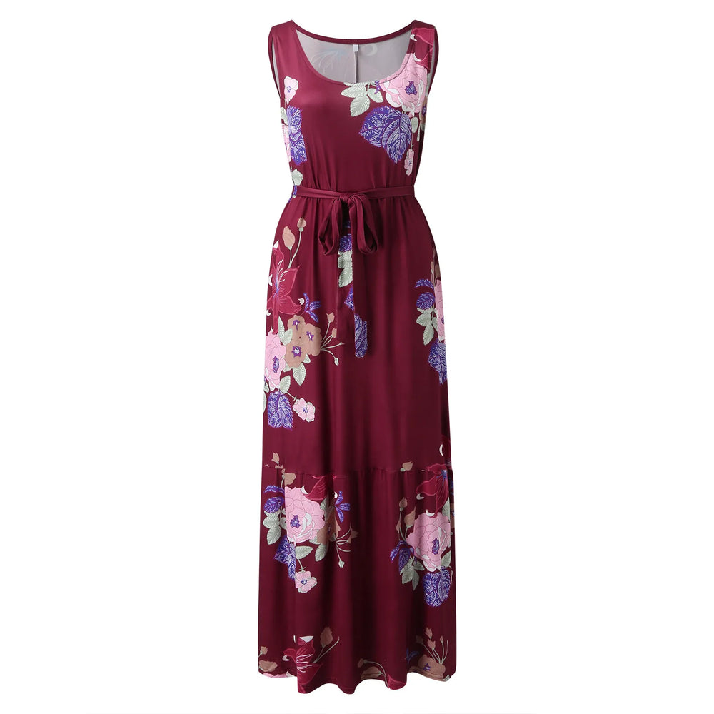 JuliaFashion - Bohemian Floral Long Women 2024 Summer Casual Maxi Fashion Sleeveless Lace Up Tank Vintage Party Robe Dress