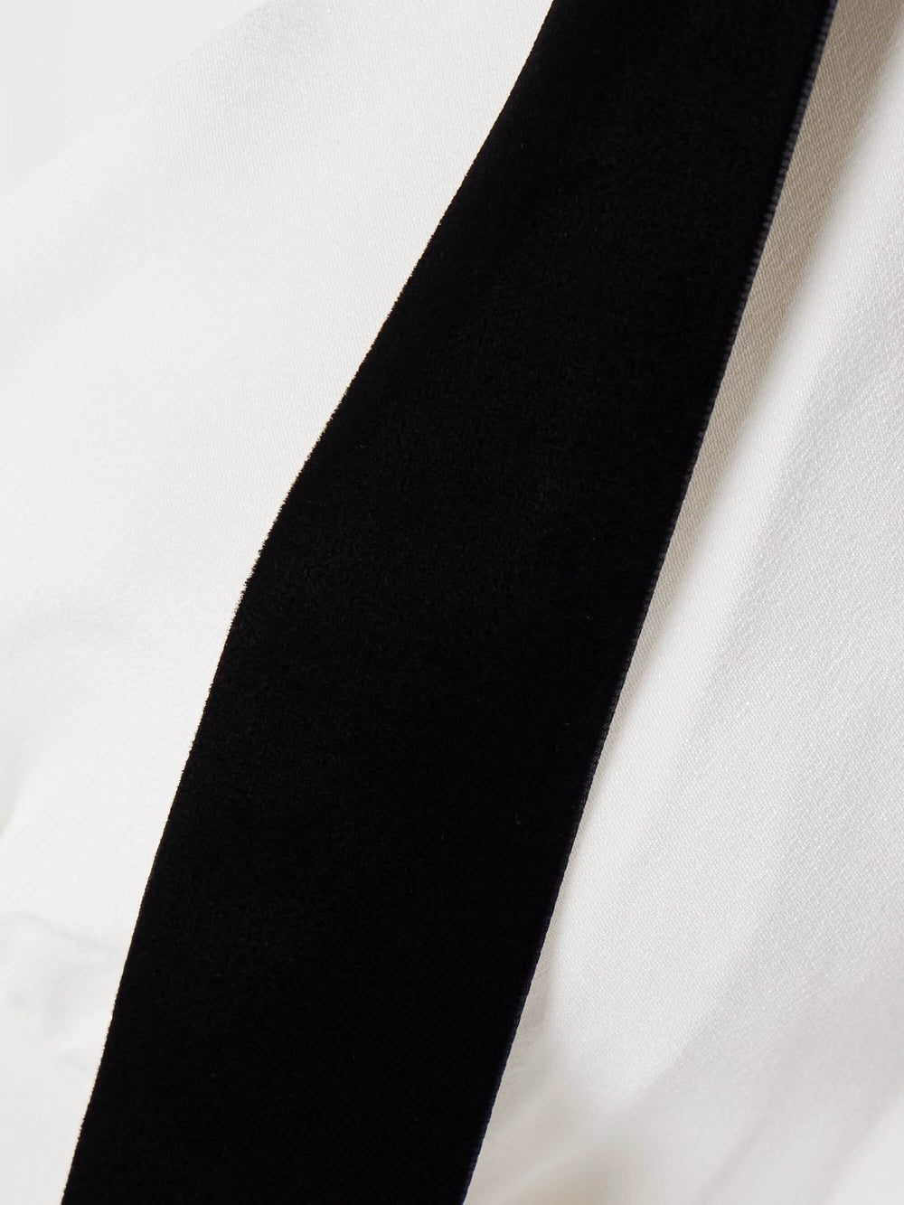 Draped in pristine white and adorned with a plush velvet bow, this gown is a dreamlike blend of sophistication and whimsy. Designed to make you feel like a modern-day muse, the silky fabric glides effortlessly over your curves, while the statement bow detail adds a touch of playful luxury—perfect for the bride who adores classic charm with a hint of drama.