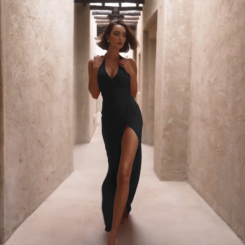 Playing dress up begins with our Ritter Slit Dress and truly never ends, featuring halter neck and a slit.