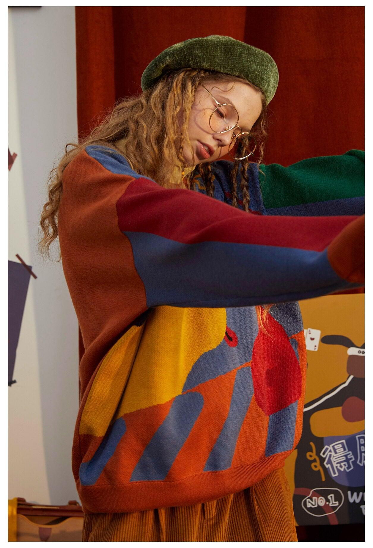 Unleash your playful side in our weirdcore dog sweater. The colorful design on a comfortable cotton-polyester knit material is sure to uplift any casual attire. Be the center of attention with this unique long sleeve crew neck piece.