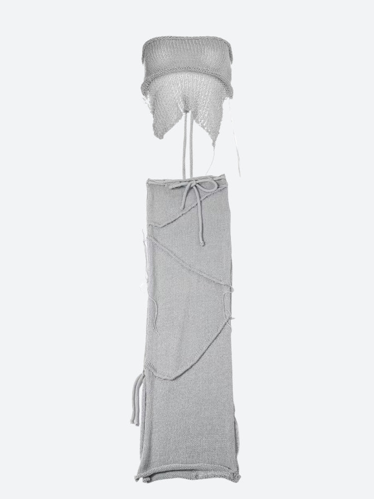 Crochet Backless Top & Maxi Skirt Two Piece Set