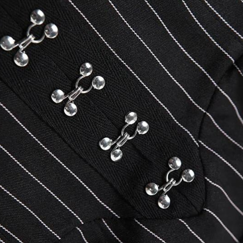 This dress features a fitted bodice with lace trim and hook-and-eye detailing down the front, adding a touch of gothic allure. The ruffled skirt adds volume and movement, creating a dramatic silhouette. Whether you're heading to a night out or a special event, this dress ensures you stand out with its unique, dark aesthetic.