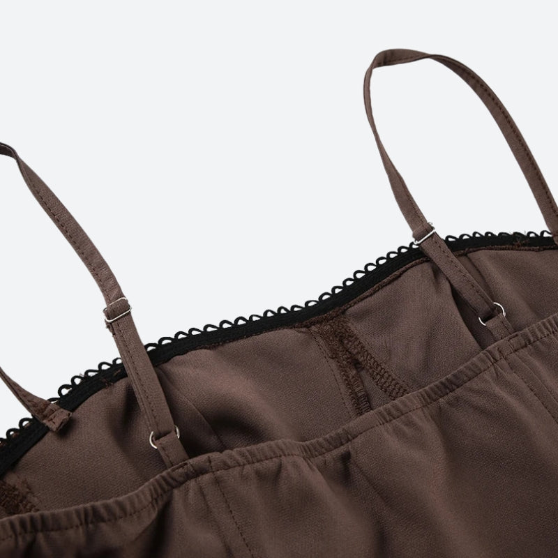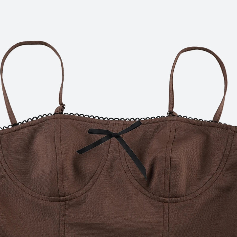 This bow pleated mini dress blends a structured corset top with a flirty pleated skirt for a chic, feminine look. The delicate lace trim and bow detail add a soft touch, making it ideal for casual outings or dressed-up occasions.