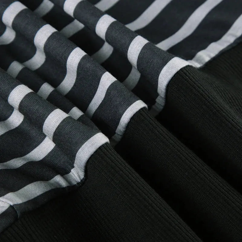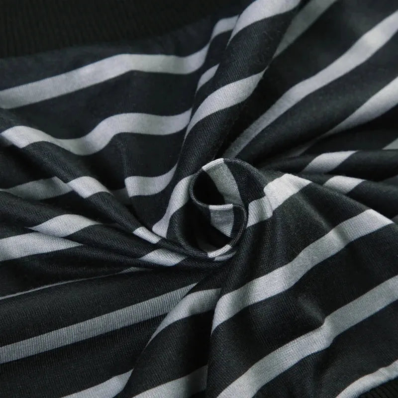 Rock a cool, edgy vibe in this grunge-striped wrap crop top. The V-neck wrap detail and fitted long sleeves define your silhouette, making it ideal for layering or stand-alone looks.