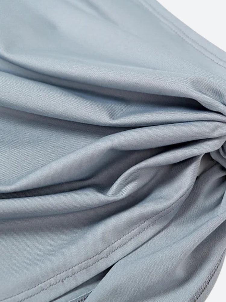 Breeze through summer in this high-cut swimsuit skirt two-piece set. A sleek halter neckline and revealing cutouts keep it bold, while the wrap skirt offers breezy coverage. Great for sunny poolside days or tropical getaways.
