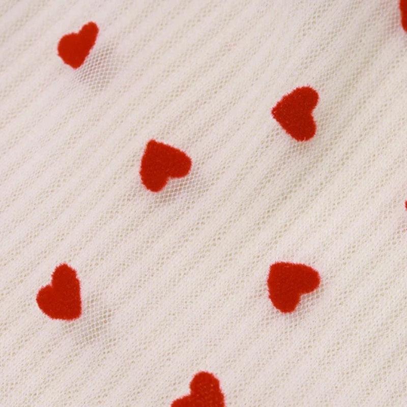 Sweet with a flirty twist. This ribbed tube top features a mini heart print and an oversized red bow that gives major coquette-core energy. The stretchy fit hugs just right—pair it with low-rise jeans or a pleated mini skirt for the ultimate Y2K look.