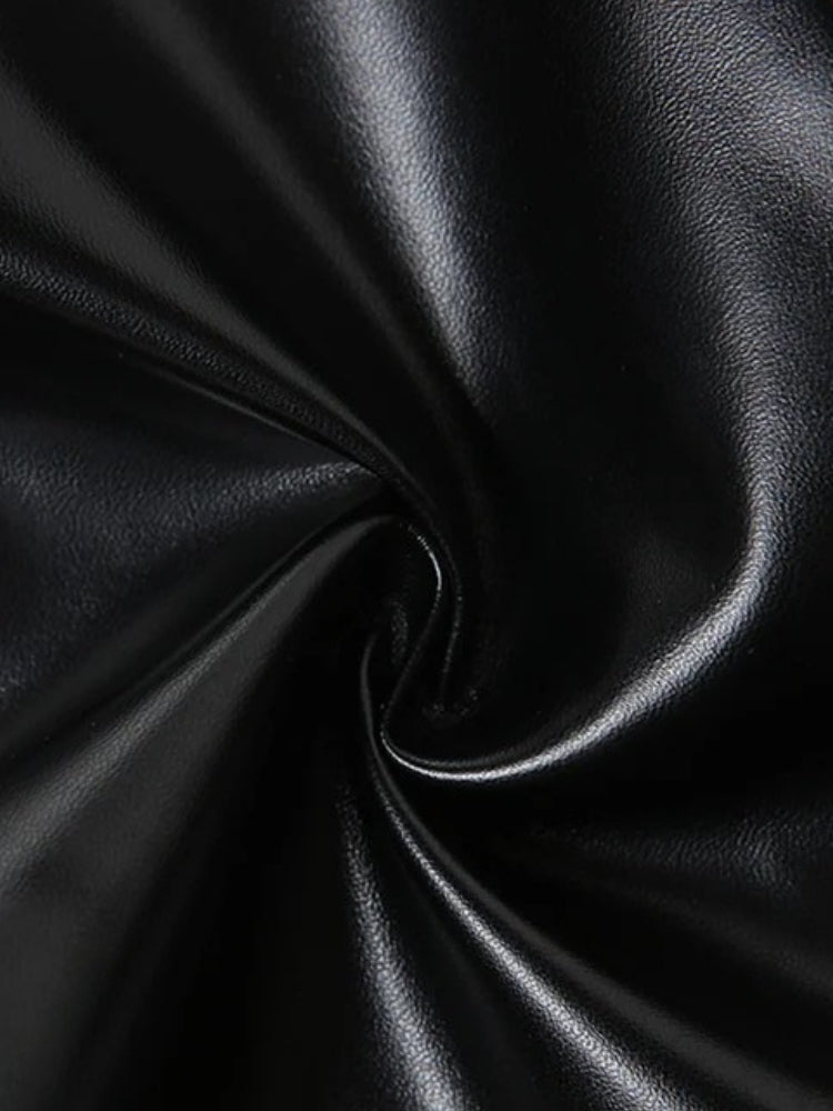 Sleek and bold, this halter neck tie top levels up your alt wardrobe. Crafted from glossy stretch fabric, it hugs the body with a ruched finish and edgy shine. The adjustable neck tie adds attitude and comfort, making it a standout piece for night looks, rave fits, or cyberpunk-inspired streetwear.