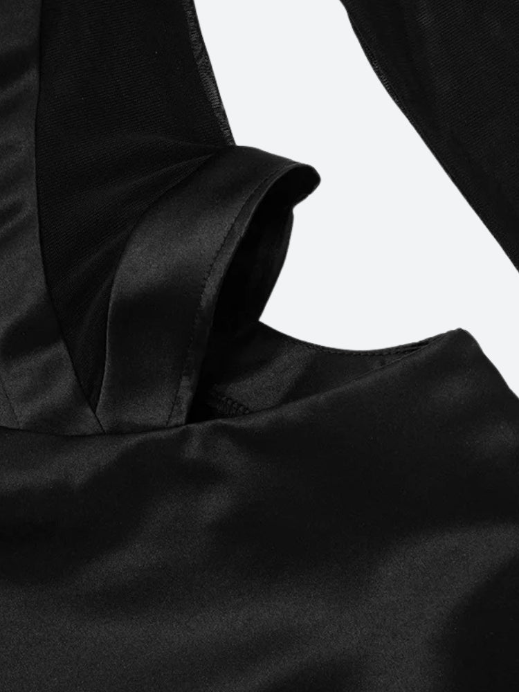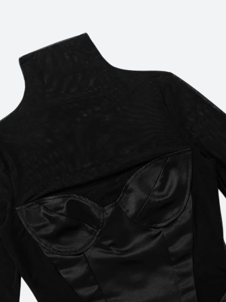 Sheer drama. Major attitude. This sultry mini dress is made to break necks. With bold cut-outs at the waist, a structured bustier bodice, and mesh paneling that hugs in all the right places, it’s pure nightlife energy. Your go-to for club nights, birthday slays, or any moment you want to be unforgettable.