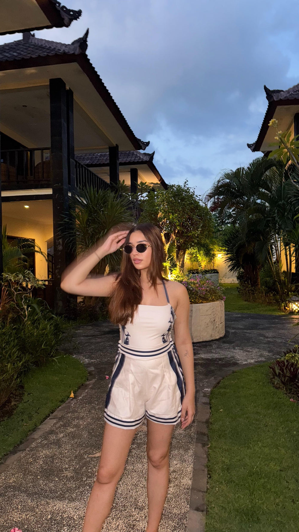 Swim-ready and beach-bound in our Ivory Tide Swimwear featuring a halter neck swimsuit