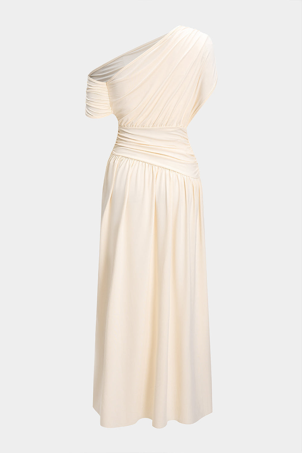 Ruched Asymmetrical Sleeveless Maxi Dress