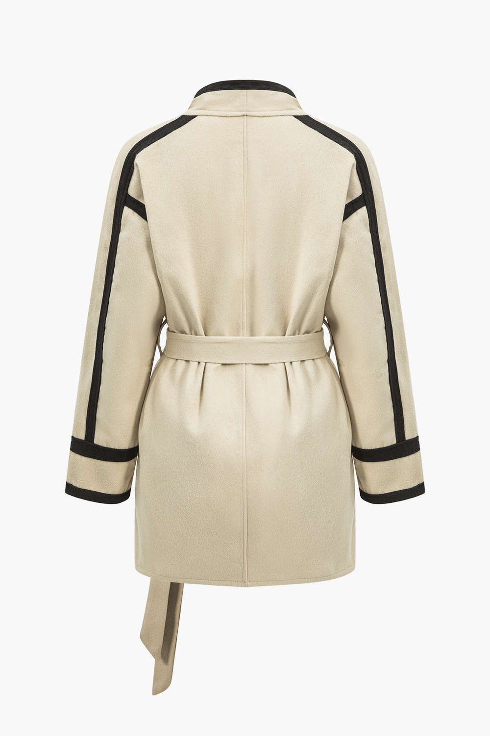 Contrast Trim Belted Wrap Coat