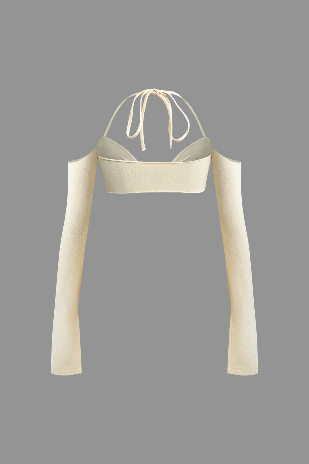 Beige Twist Tie Halter Long Sleeve Bra Top & Maxi Skirt Set