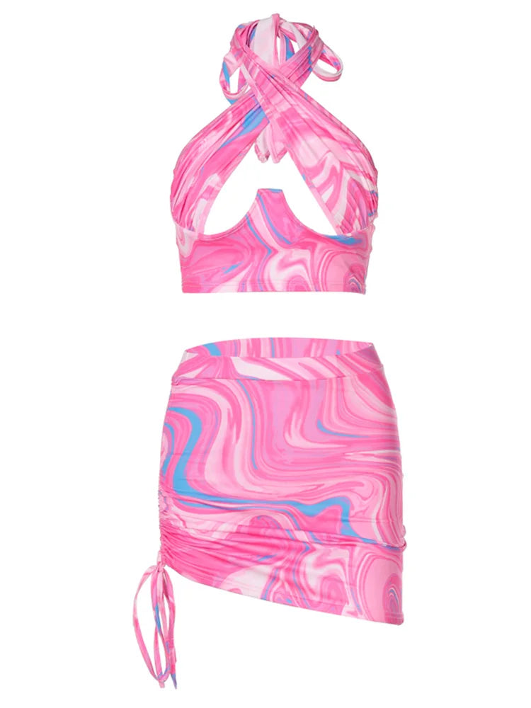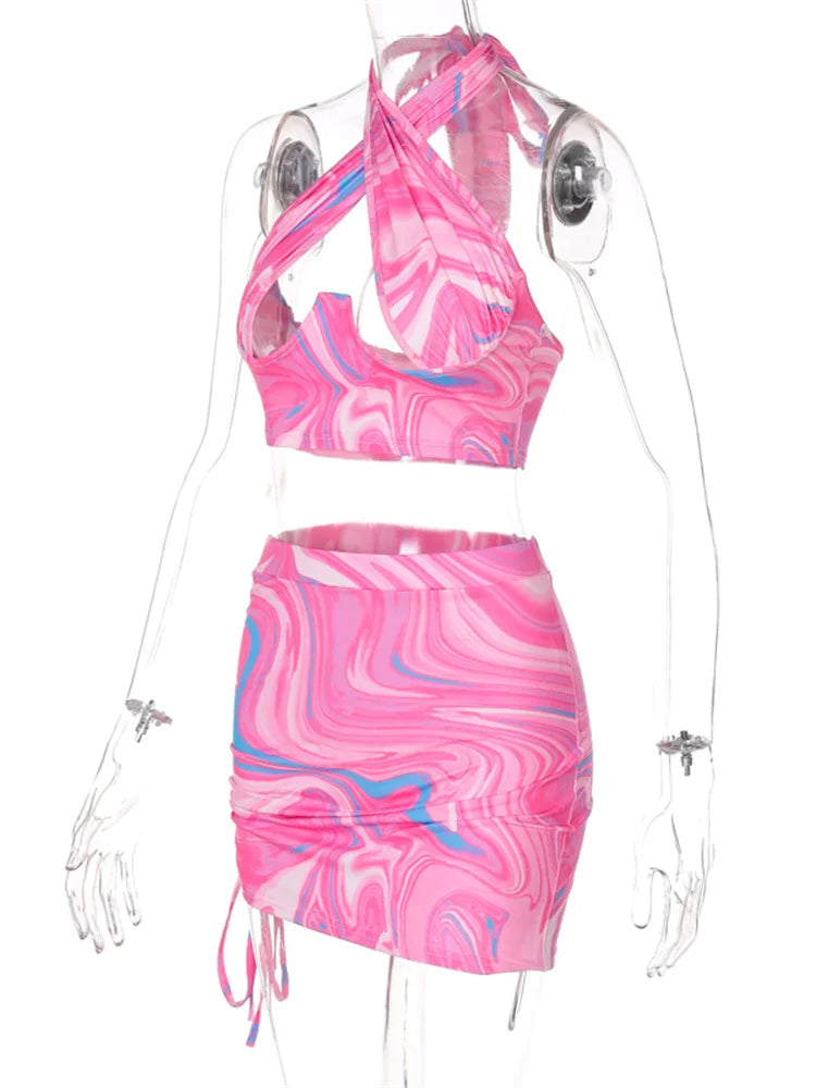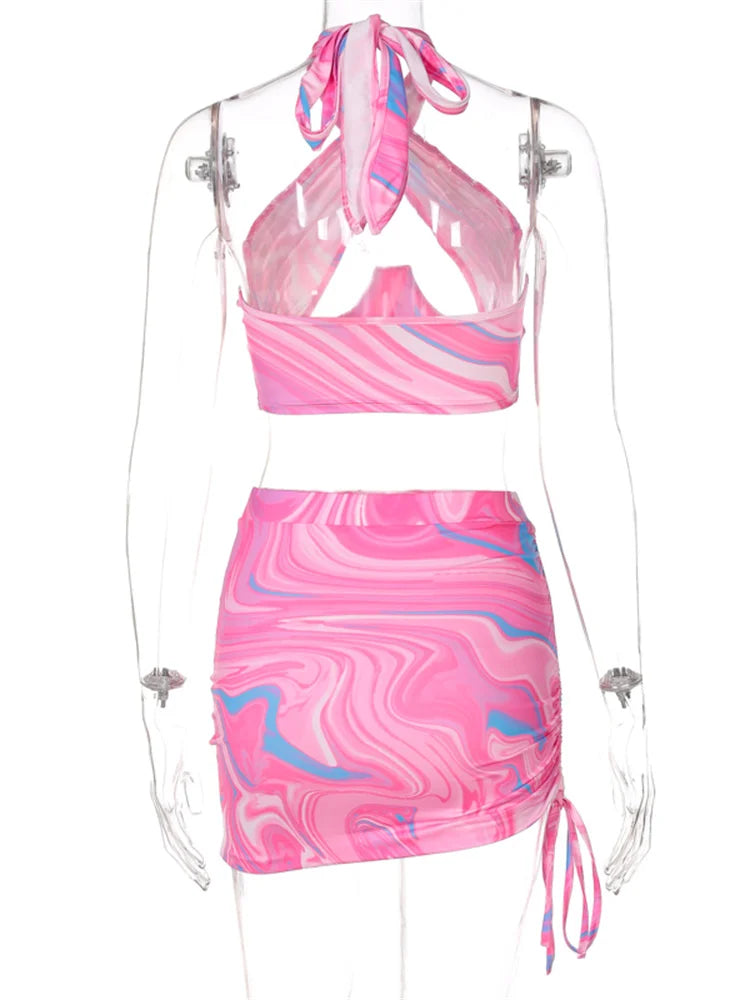 JuliaFashion - Criss-cross Halter Backless Tops High Waist Lace-up Skirts Suits