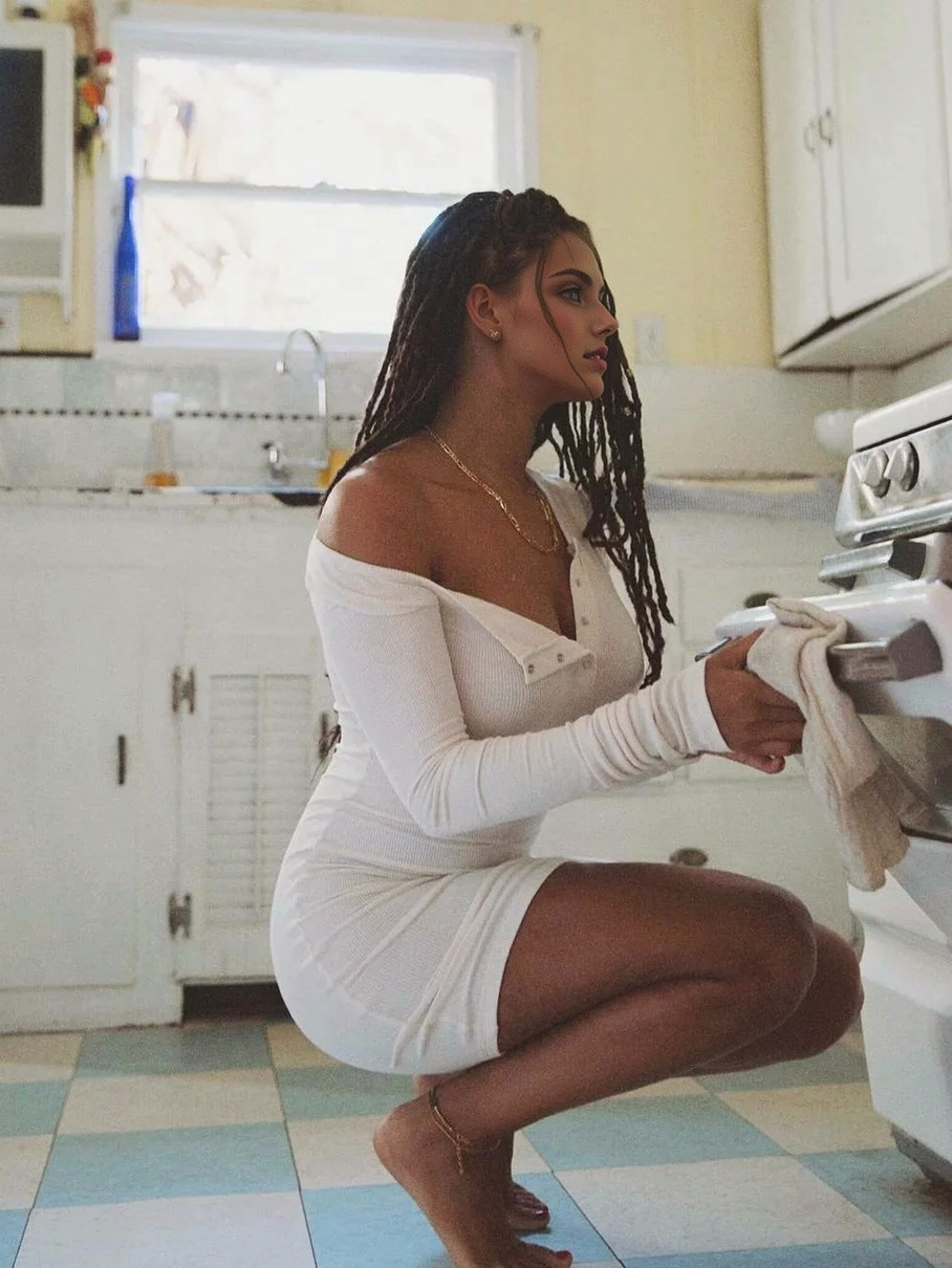 - Ribbed knit in a bodycon silhouette