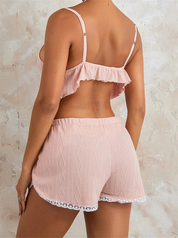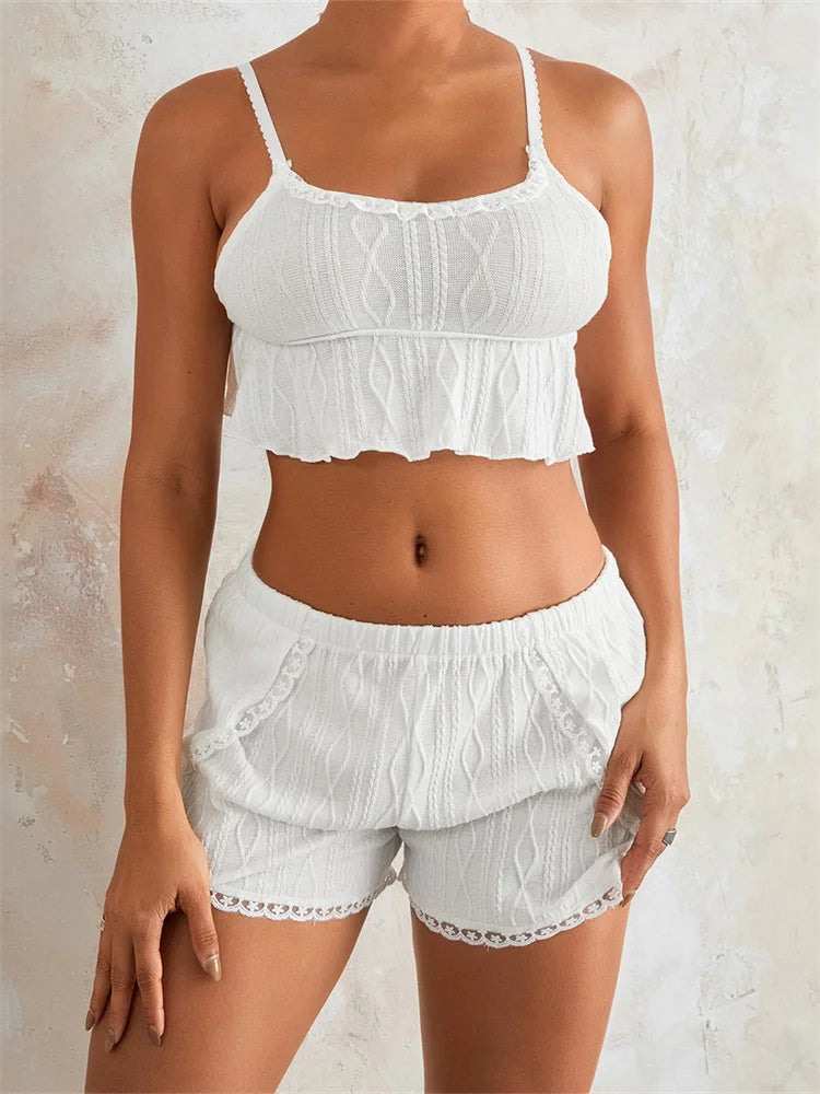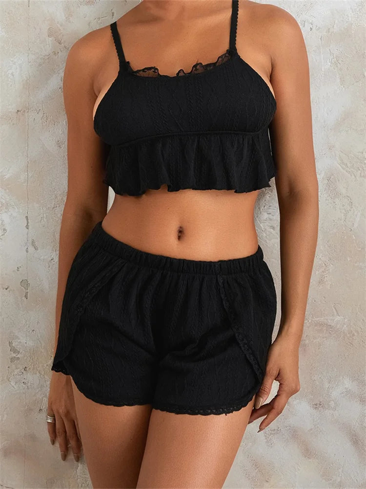JuliaFashion - Elastic Shorts Lace Patchwork Crop Sleeveless Camisole Suits