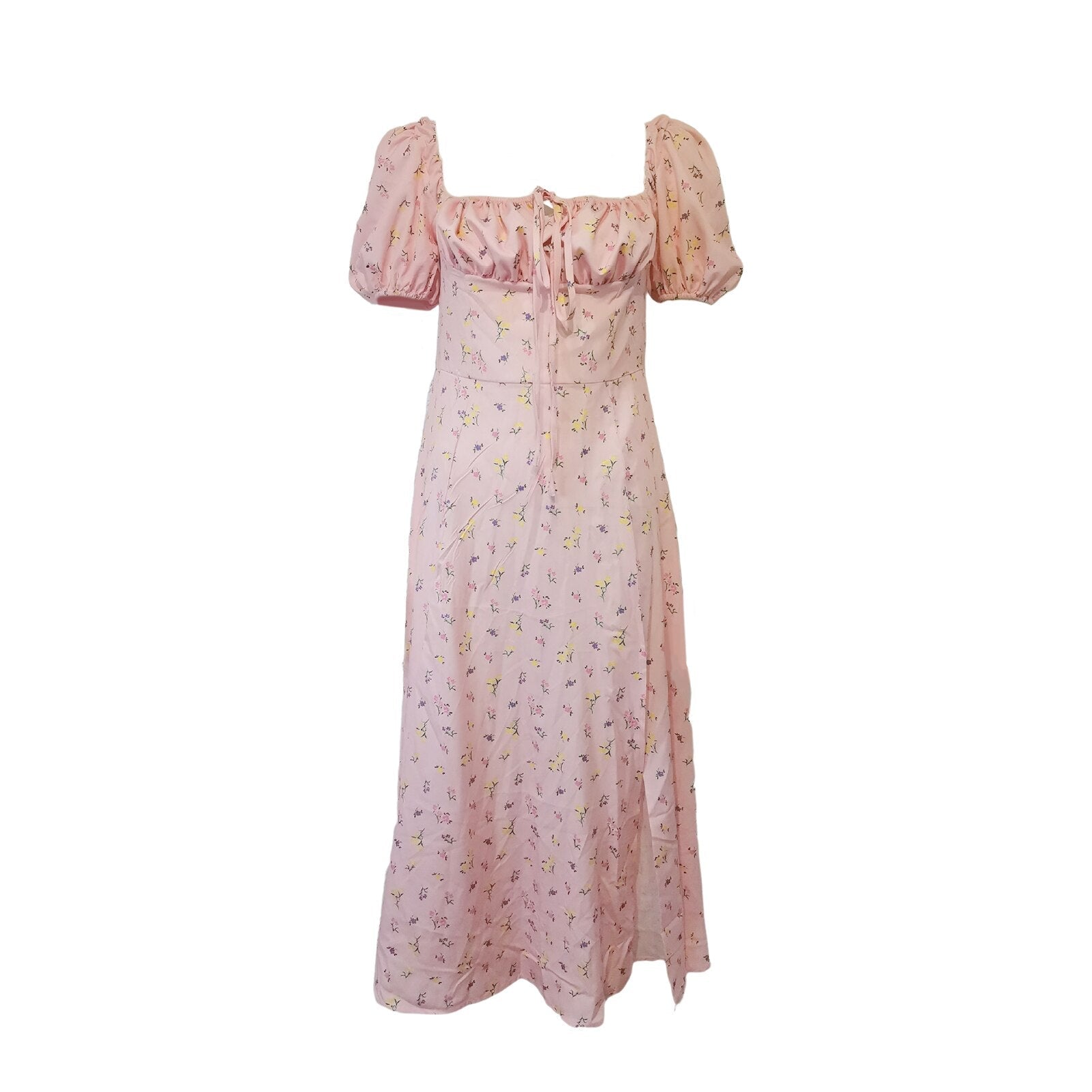 JuliaFashion-Elegant Floral Square Neck Midi Dress