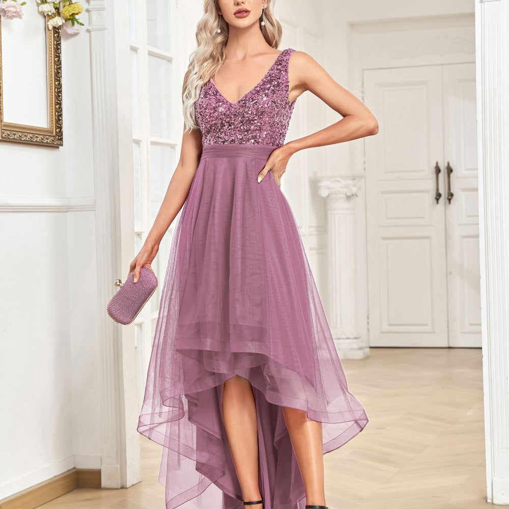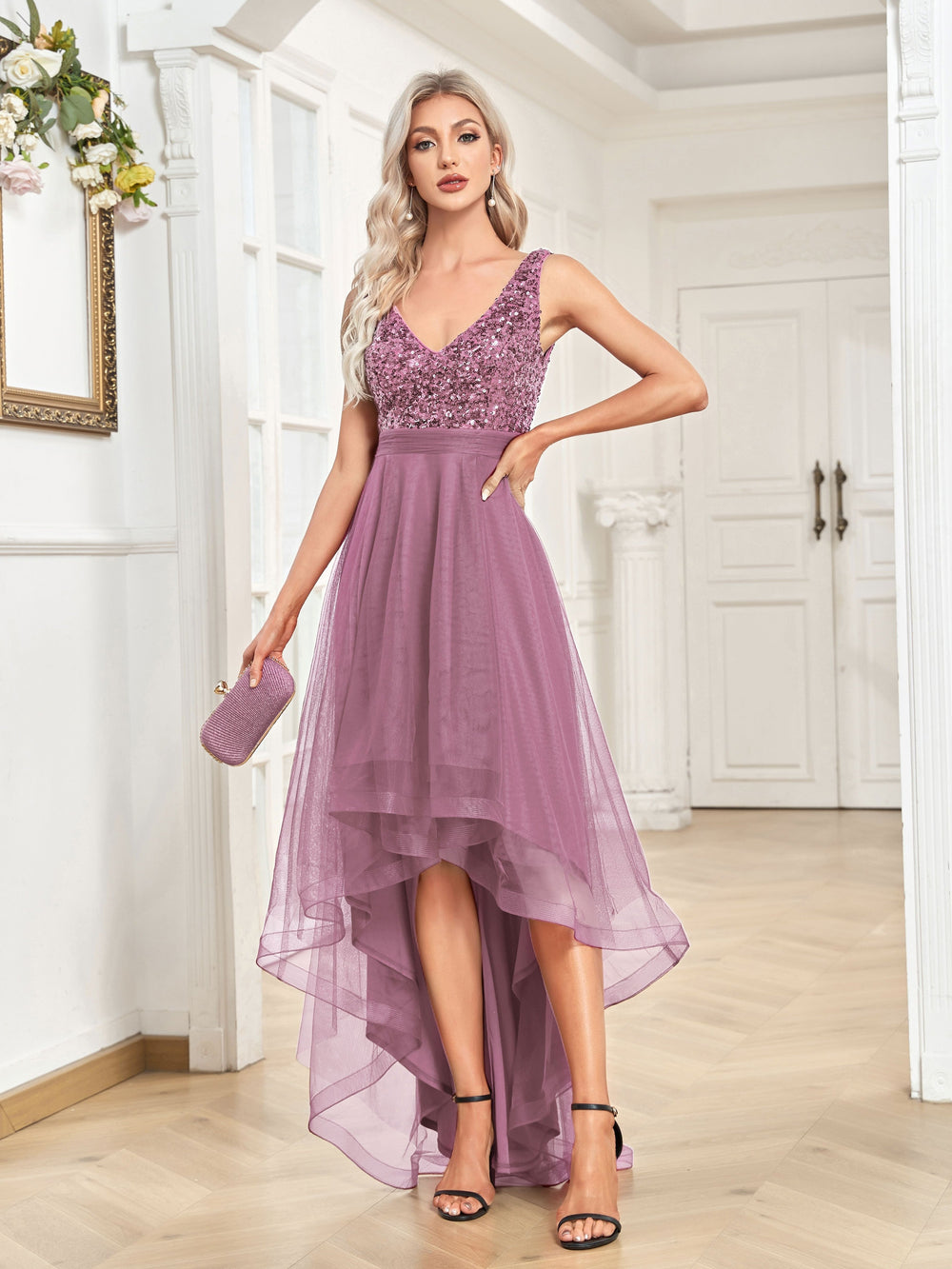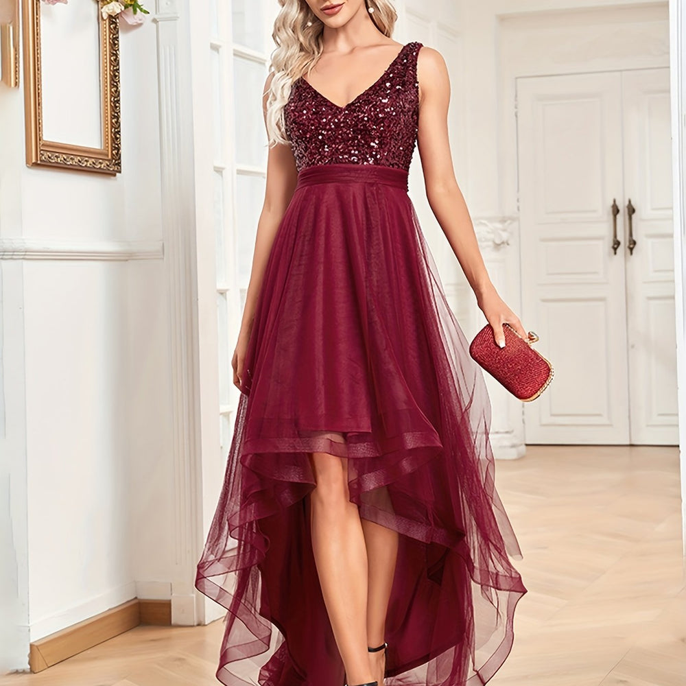 JuliaFashion - Elegant V Neck Sequined Sleeveless for Women - Perfect for Parties and Banquets Dress