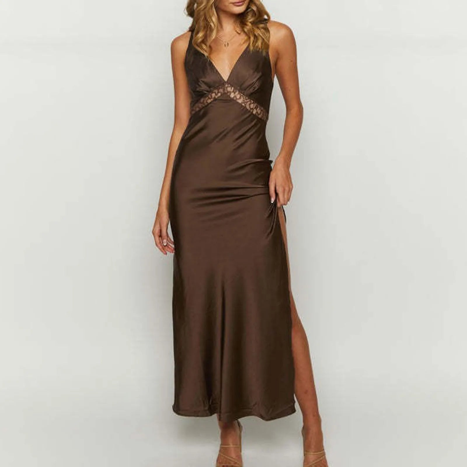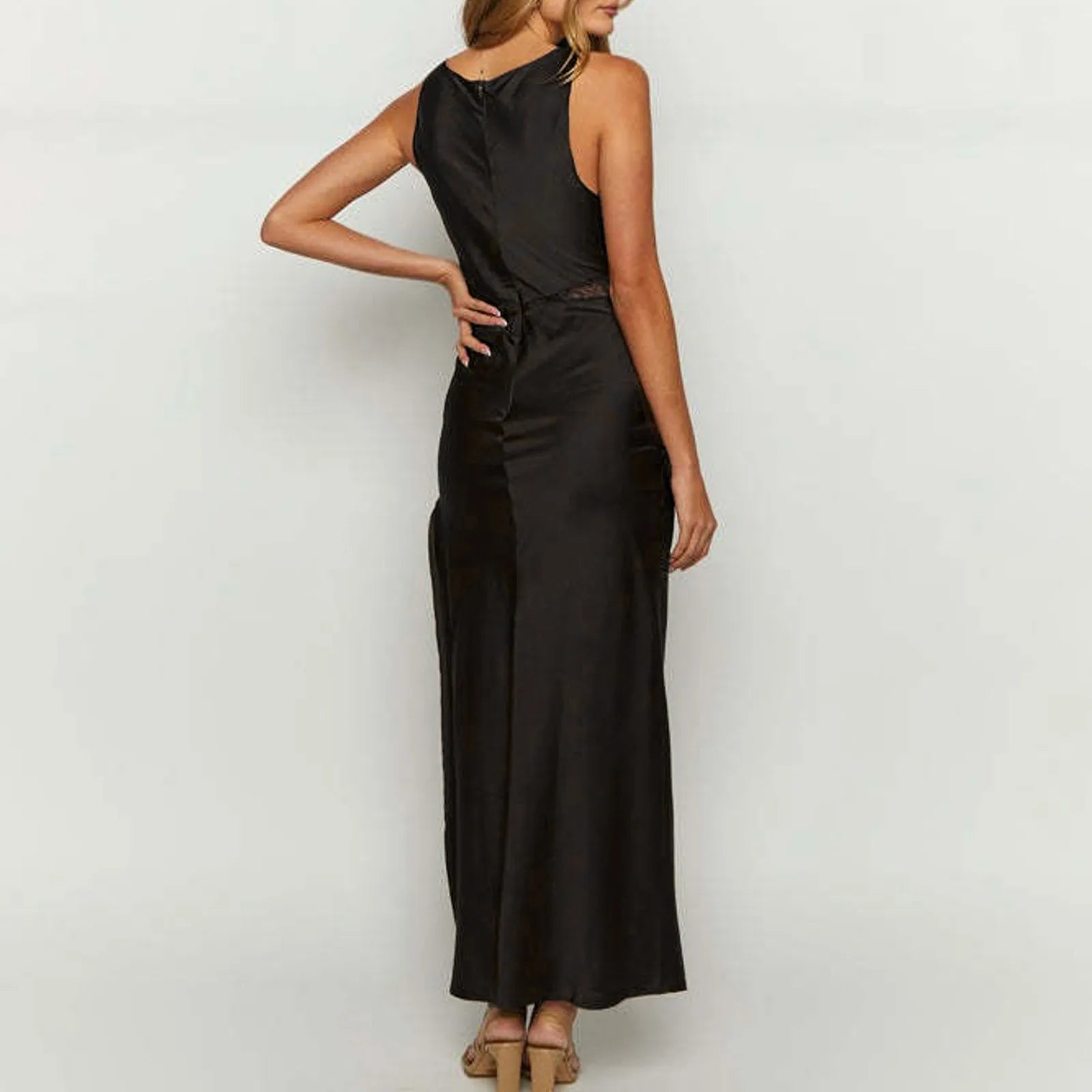 JuliaFashion - Elegant Women Deep V-Neck Long Sleeveless Backless Hollow Out Midi 2024 New Summer Female Party Dress