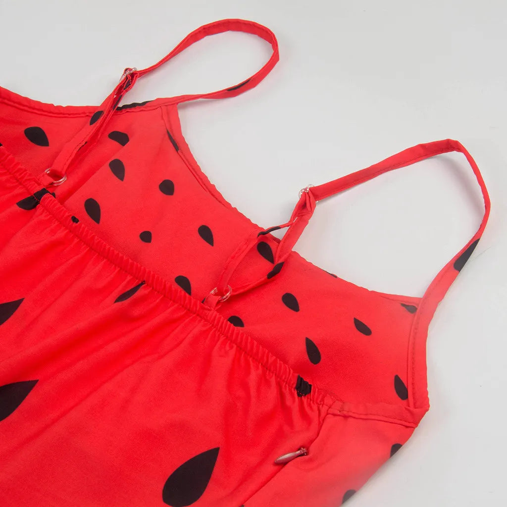 JuliaFashion - Elegant Women Sling Party Cocktail Prom Watermelon Print Big Swing High Waist Spaghetti Strap Fashion Casual Dress