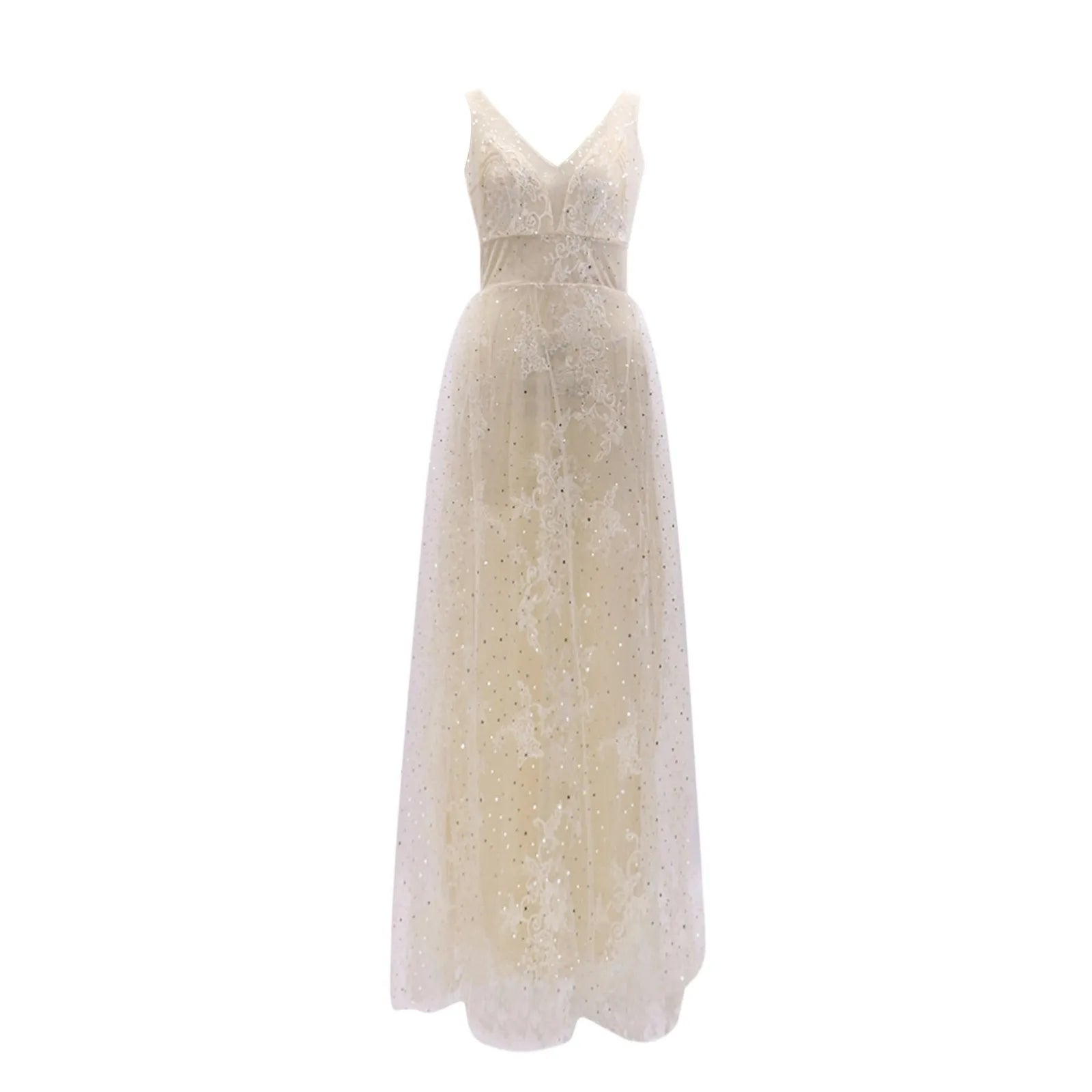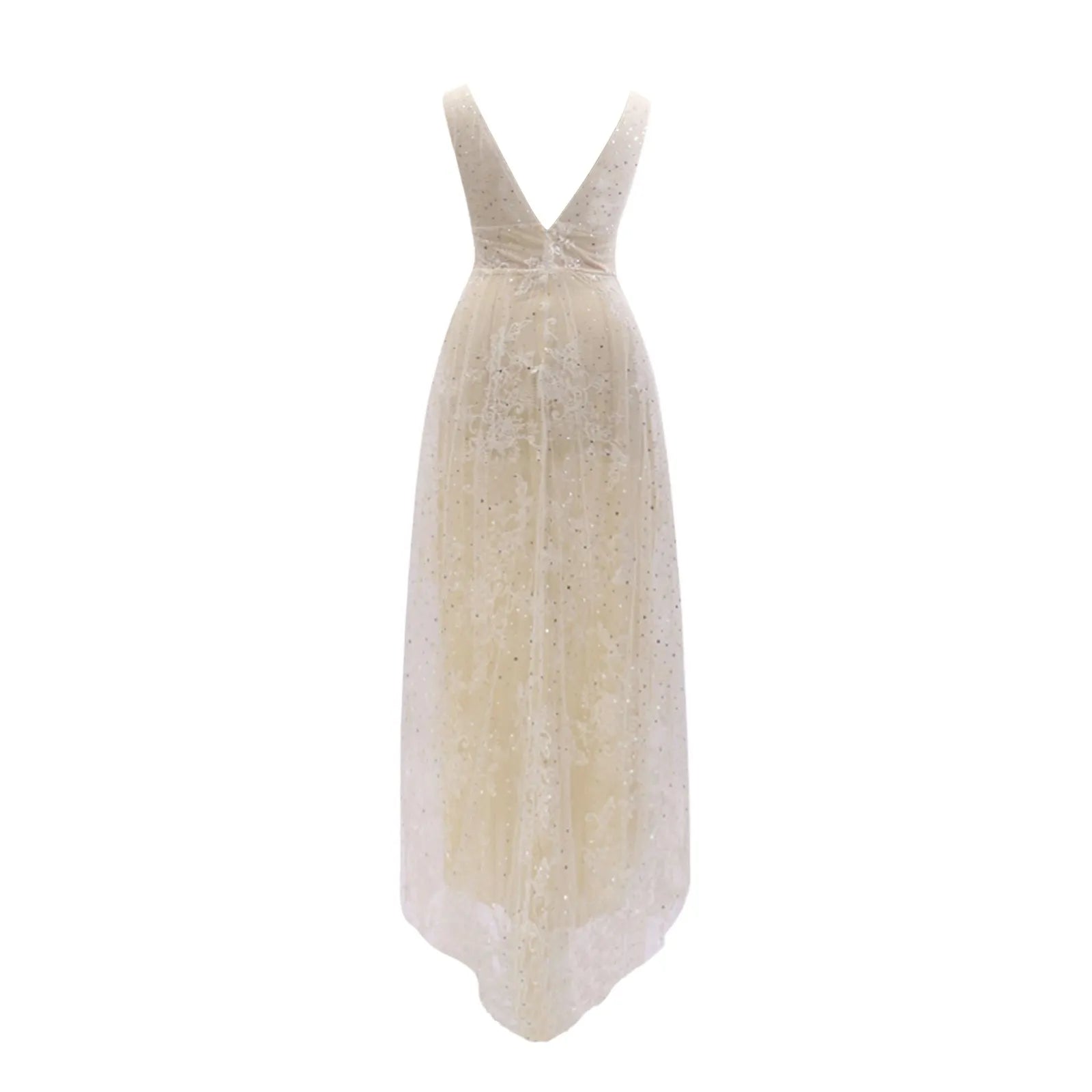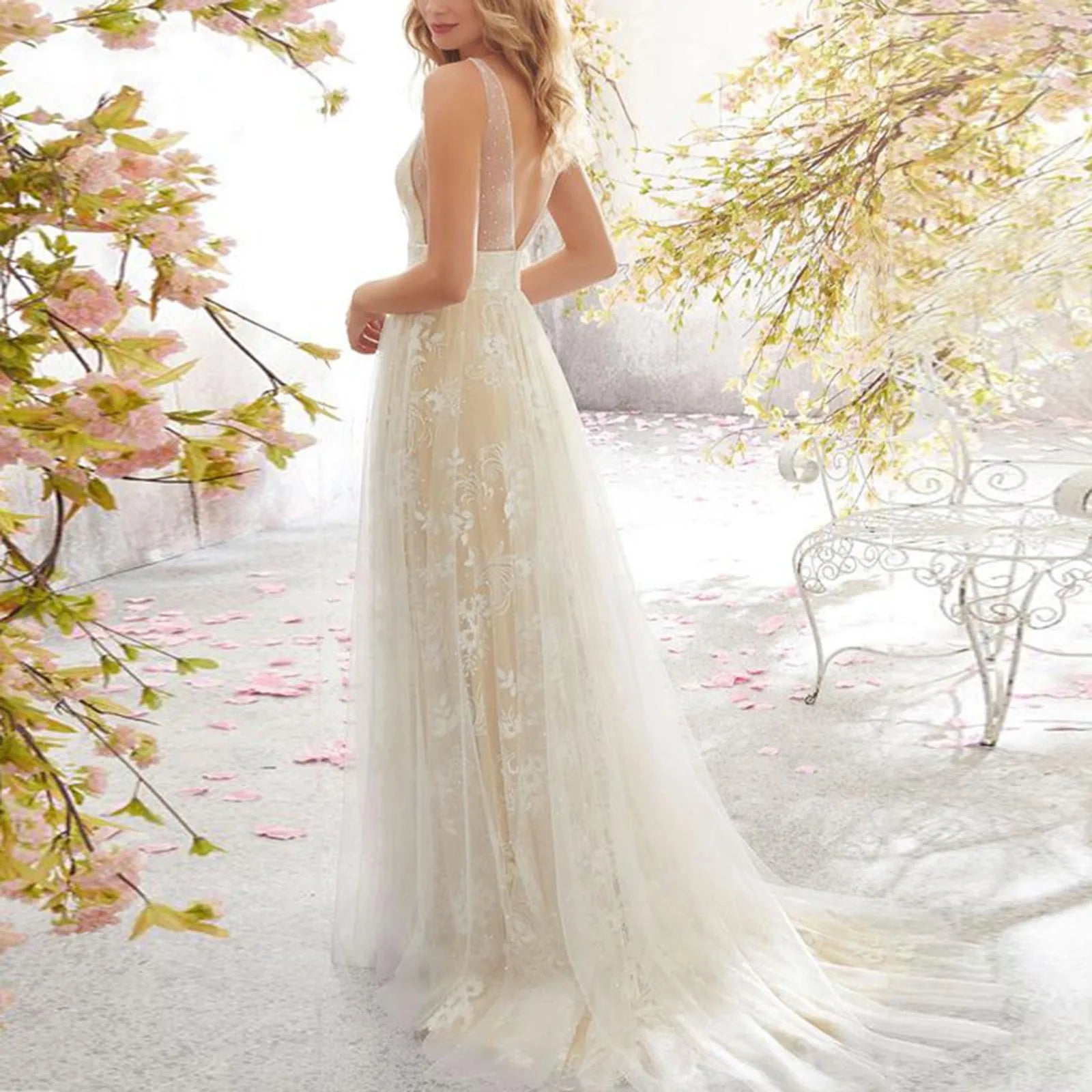 JuliaFashion - Evening Wedding Bridal Embroidery Gown V-Neck Sleeveless Mesh Lace Simple Backless Long Elegant Party Dress