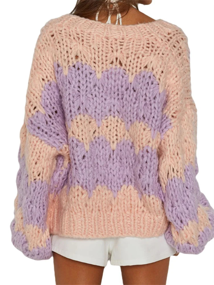 JuliaFashion - Female Contrast Color/Solid Long Sleeve Loose Knitted Cardigan Fall Winter Warm Sweater