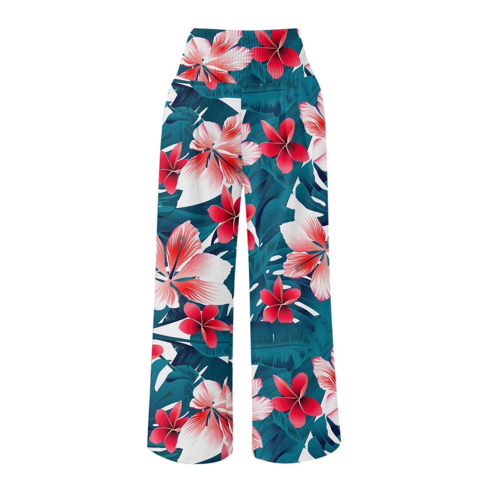 JuliaFashion-Floral Print High Waist Wide Leg Pants