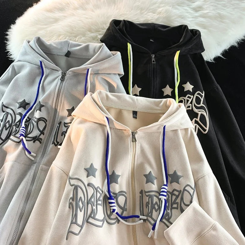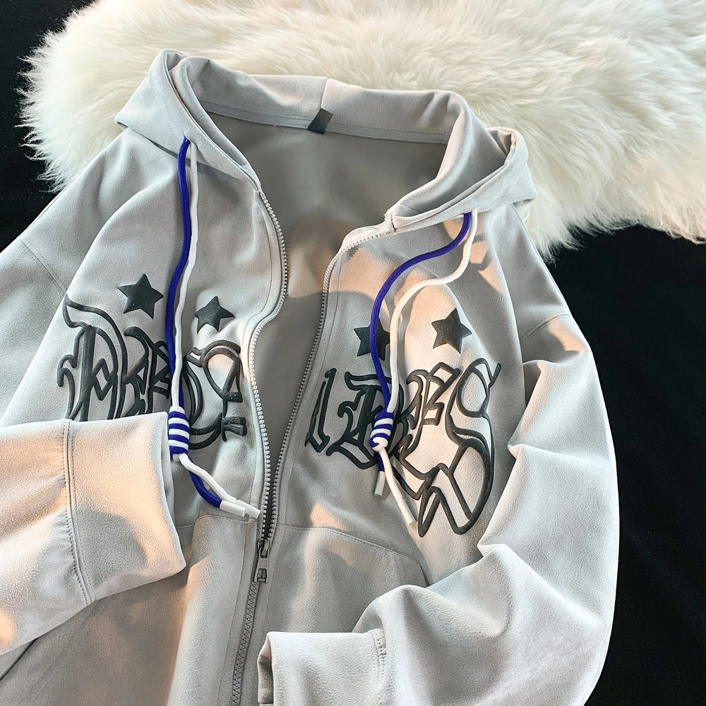 Gothic Colour Blocking Stylish Faux Suede Hoodie