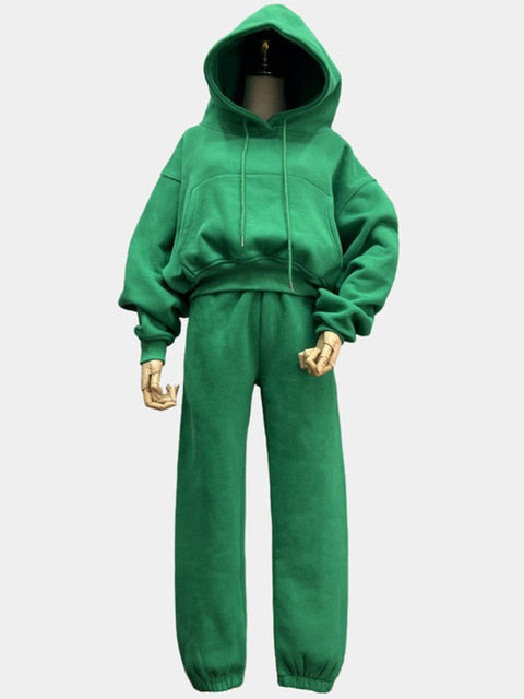 JuliaFashion - 2024Solid Casual Tracksuit Fleece 2 Pieces Set