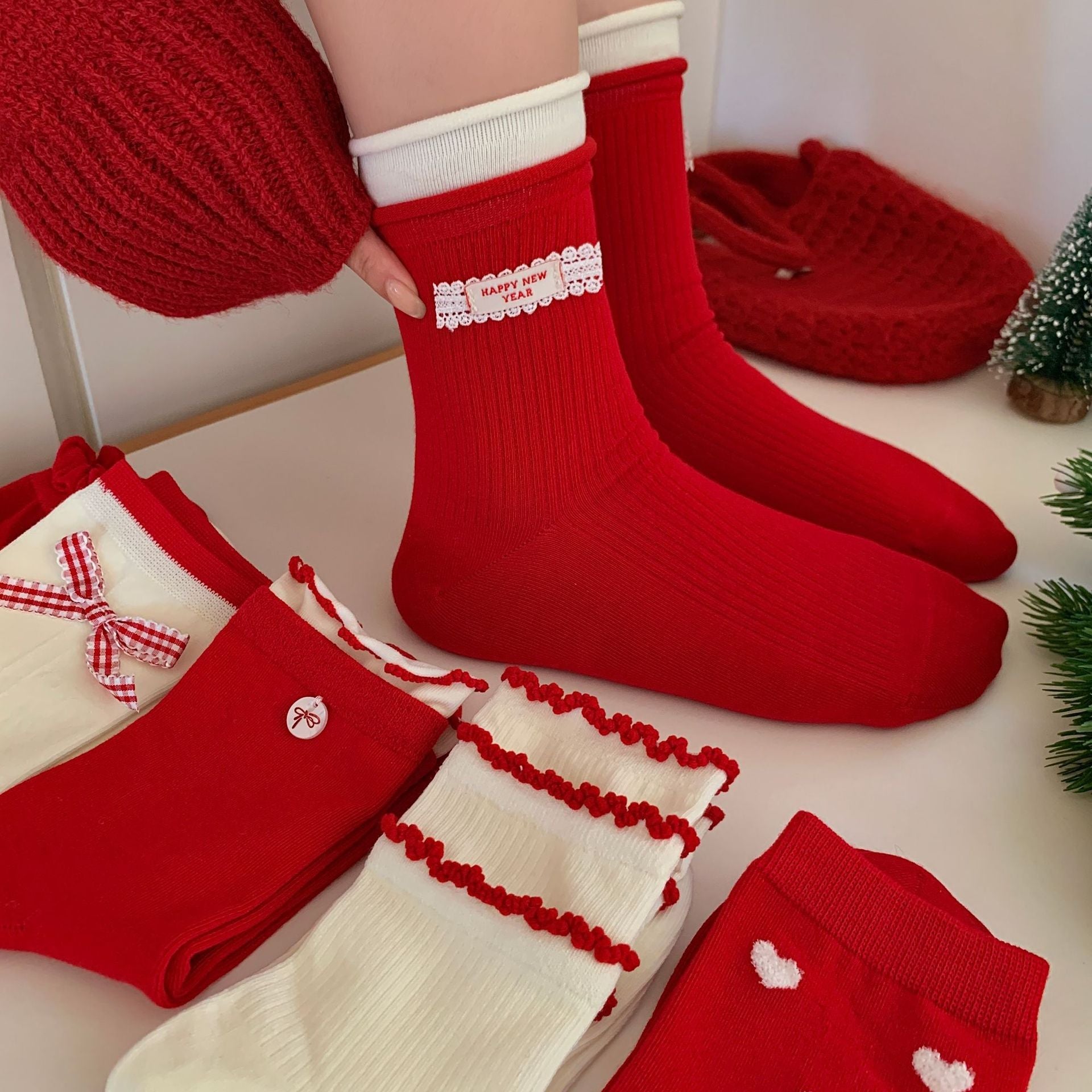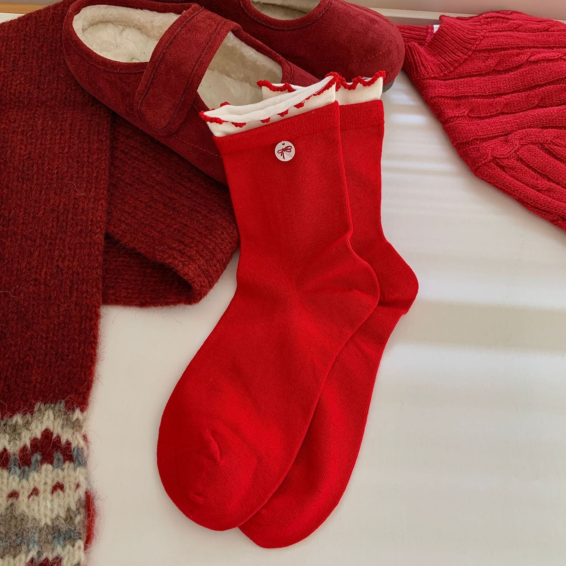Bow Slouchy Mid-Calf Cute Christmas Socks