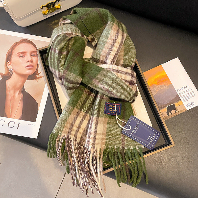 Burgundy Thermal Knit Plaid Christmas Scarf