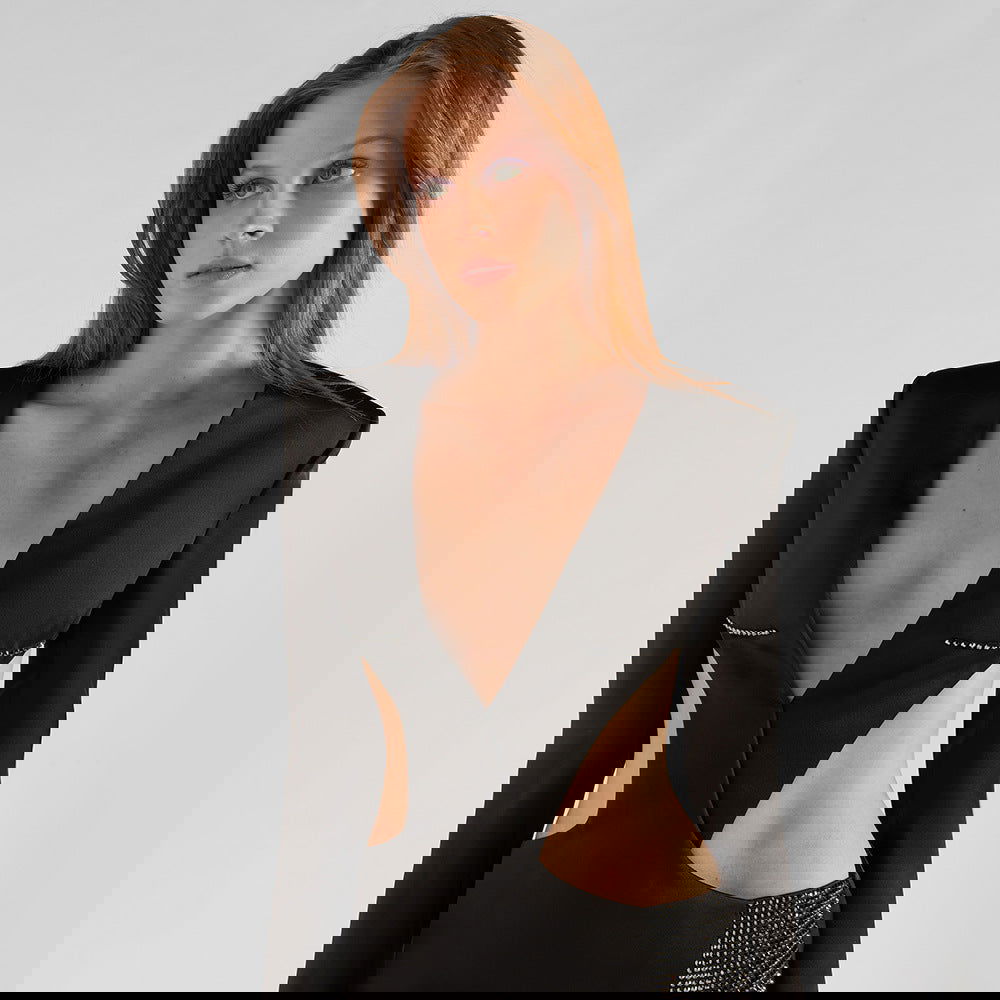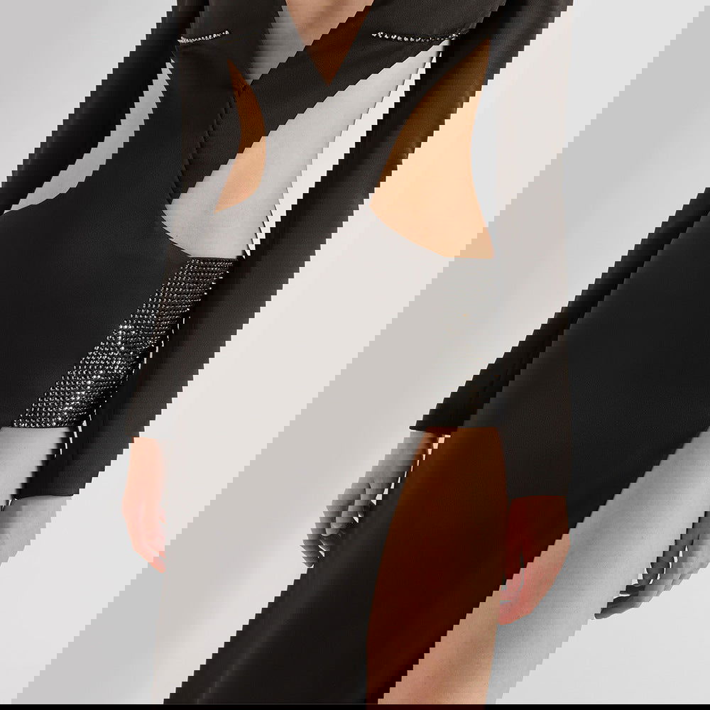 Black Cut out Rhinestone Dress Long Sleeve Split Slim Fit Dress Sexy