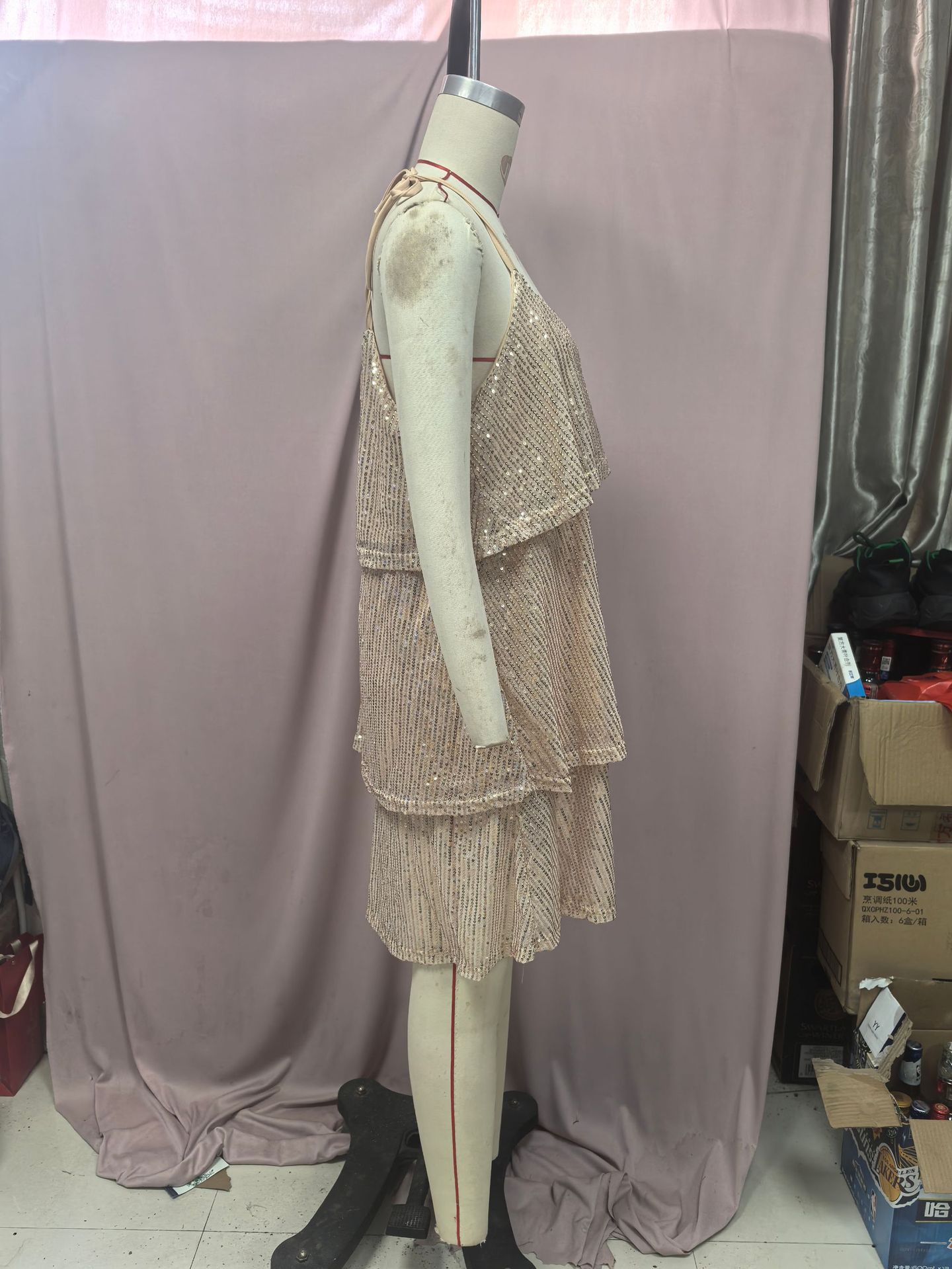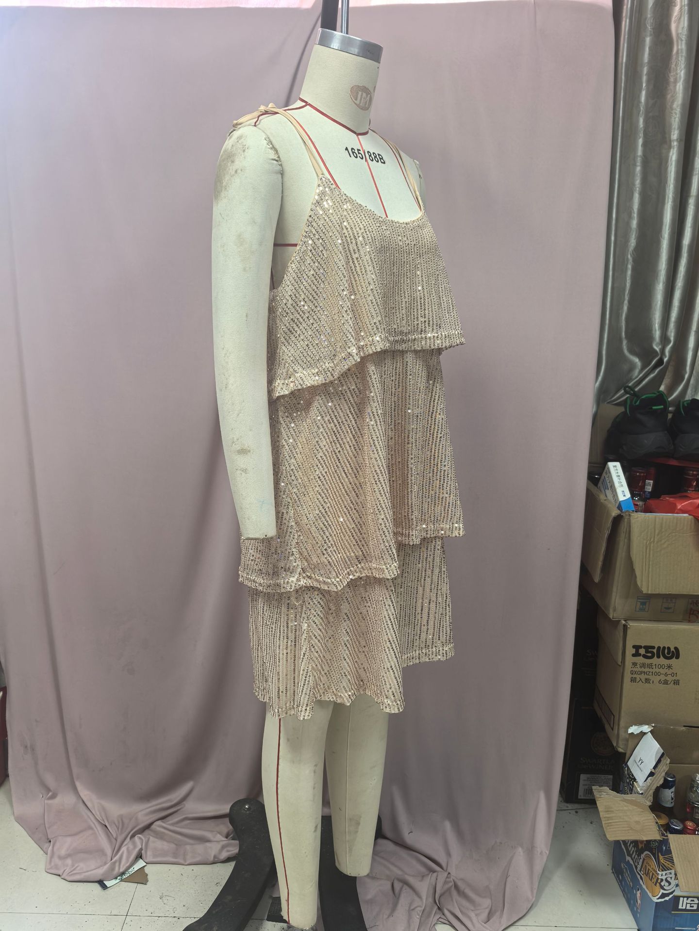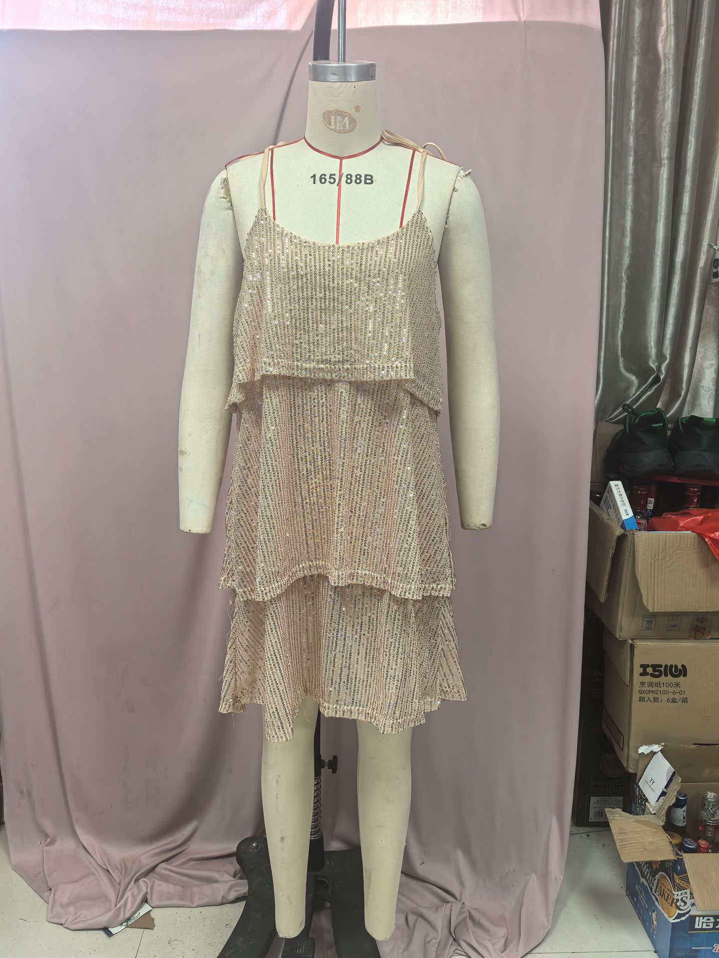 Sweet Spicy Dress Sequined Sleeveless Slimming Sling Party Tiered Dress