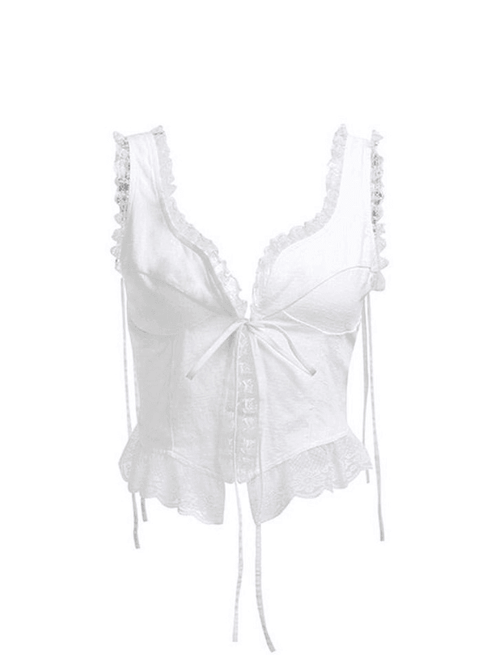 Flaunt your fashion-forward style with this trendy lace crop top. The plunging V-neck adds a touch of allure. while the ruffle hem and lace trim create a feminine and playful look. Made from a comfortable blend of polyester and cotton. this slim-fit top is perfect for a variety of occasions. Whether you're hitting the streets. going for a sweet date. or dancing the night away at a party. this crop top will keep you looking stylish and chic.