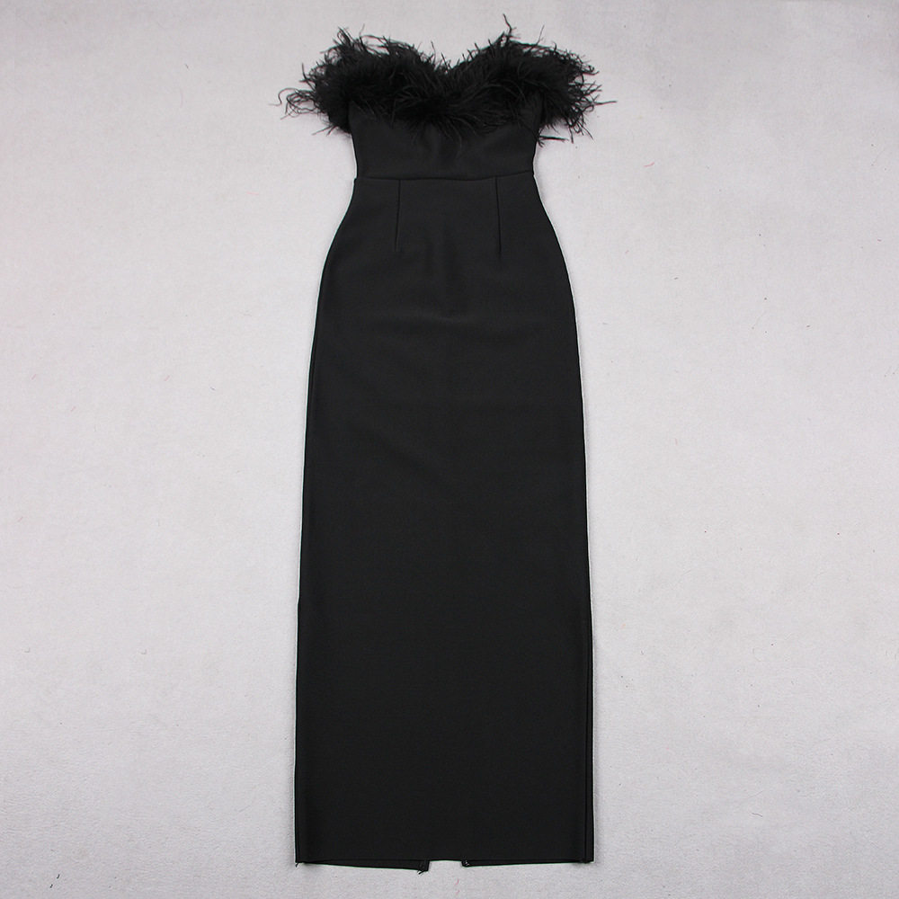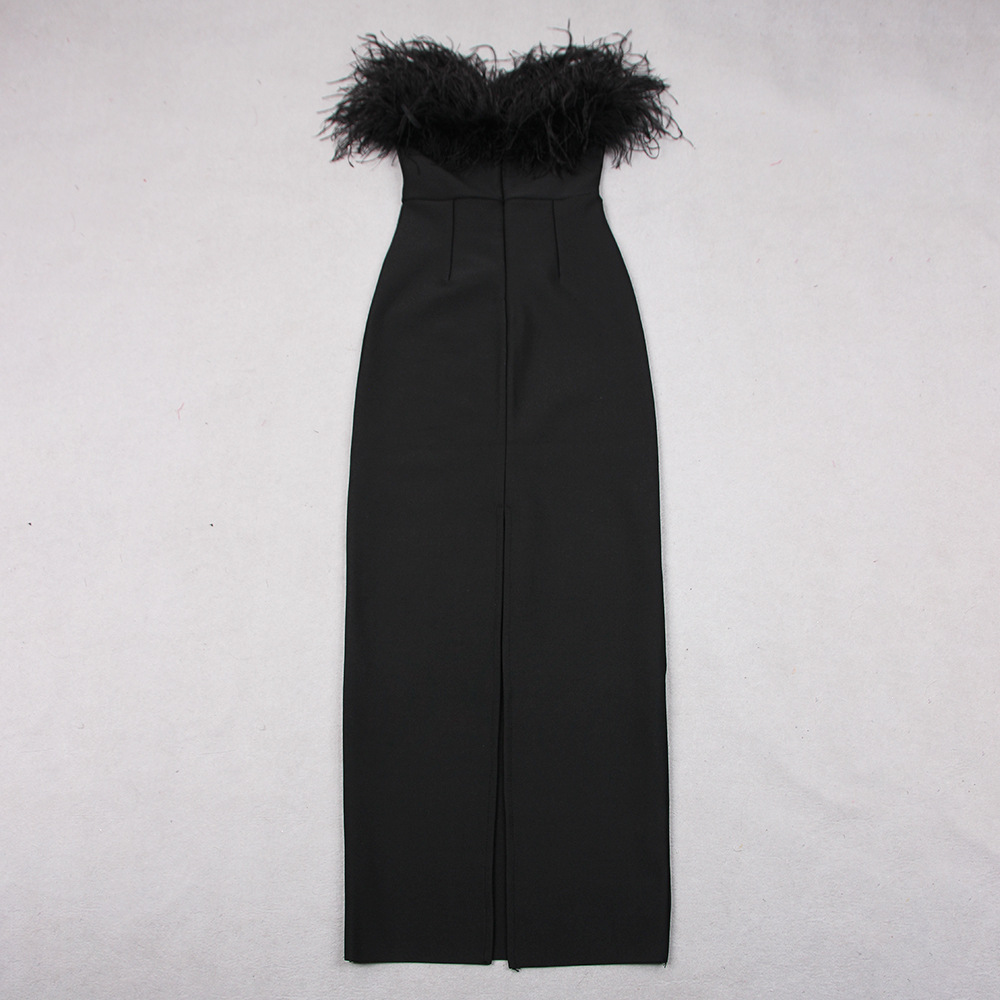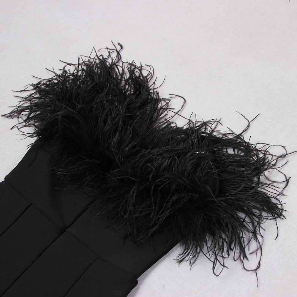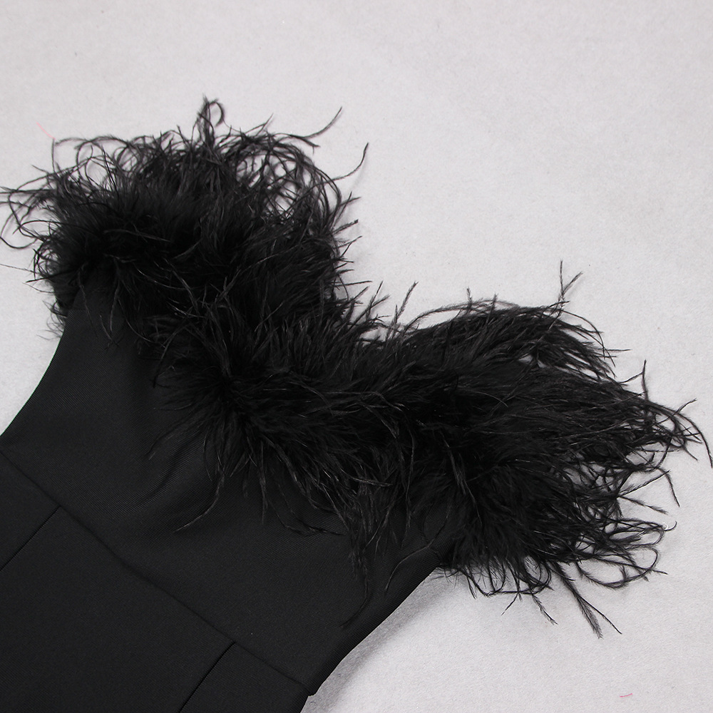 Ostrich Fur Tube Top Dress Bandage One Piece Dress