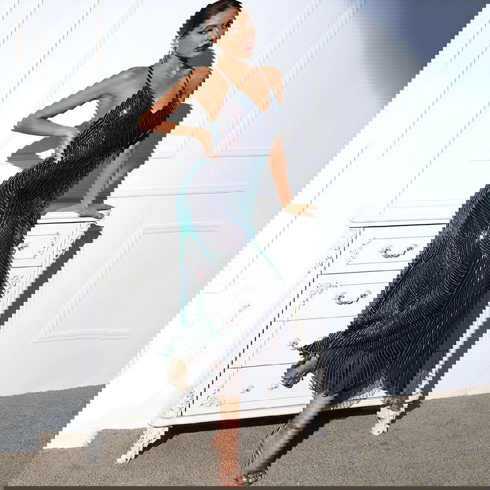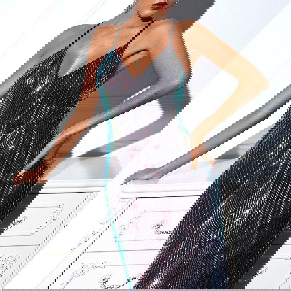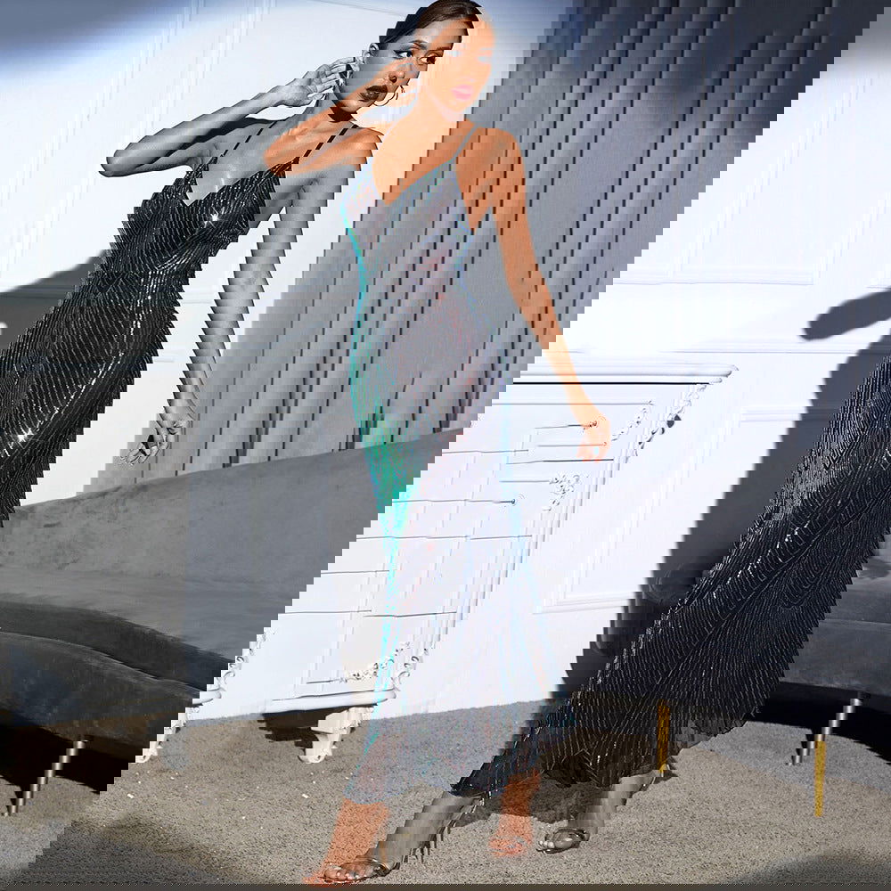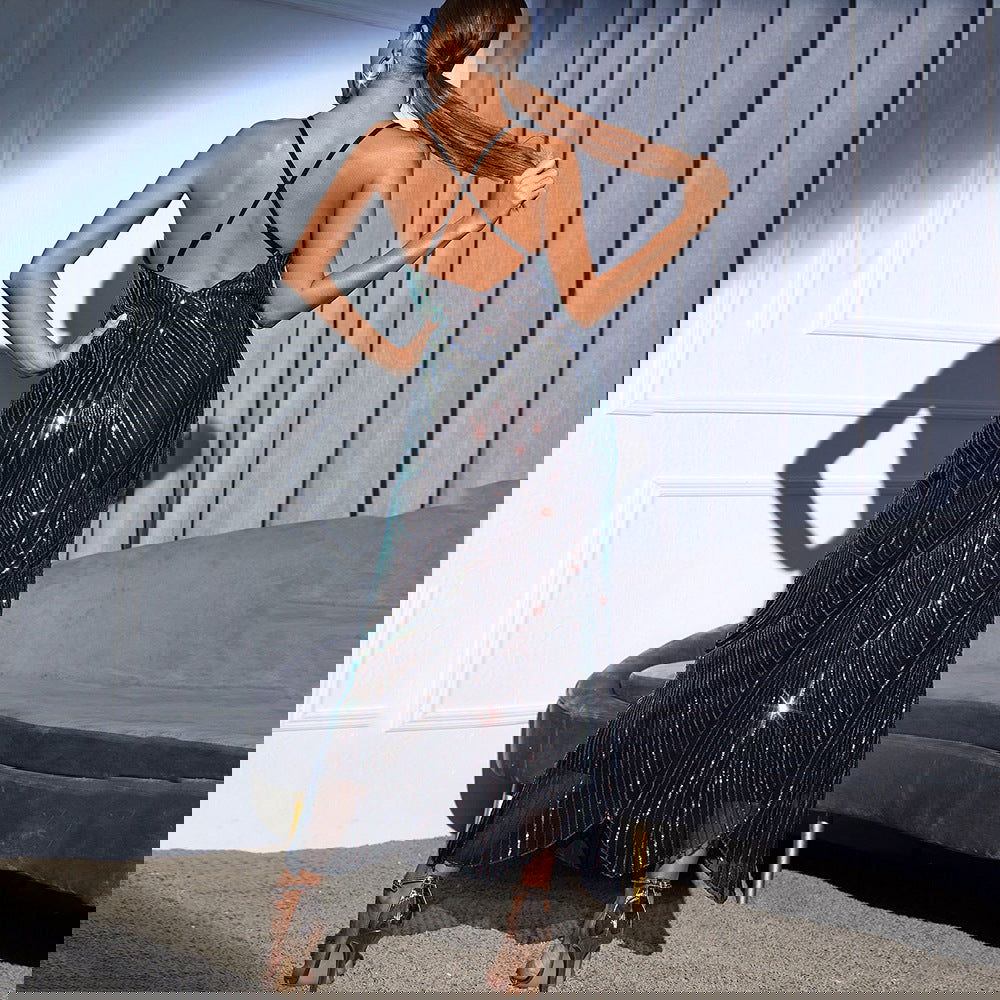 Backless Retro Spaghetti Straps Sequ Dress Dress